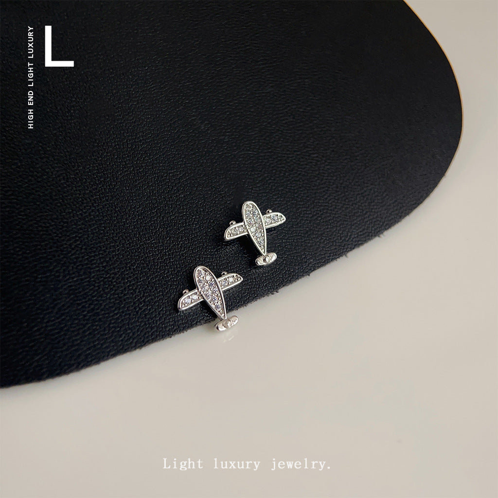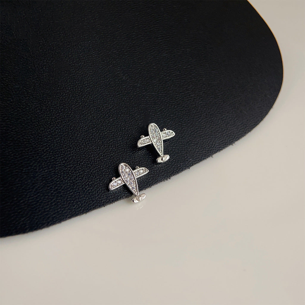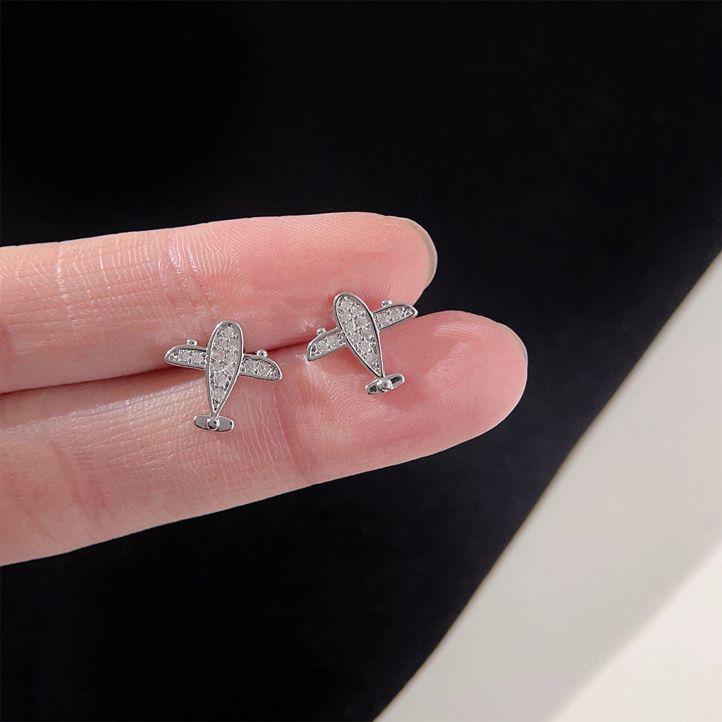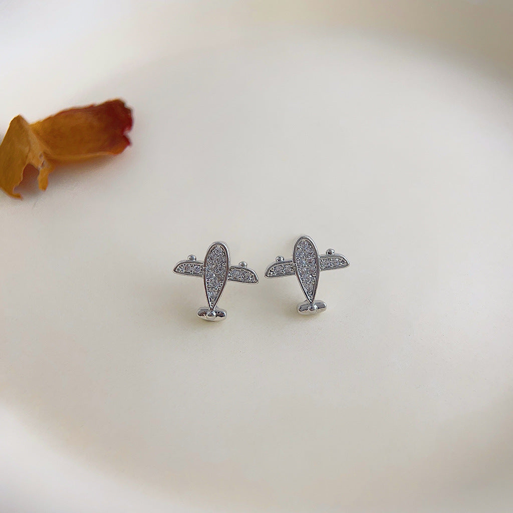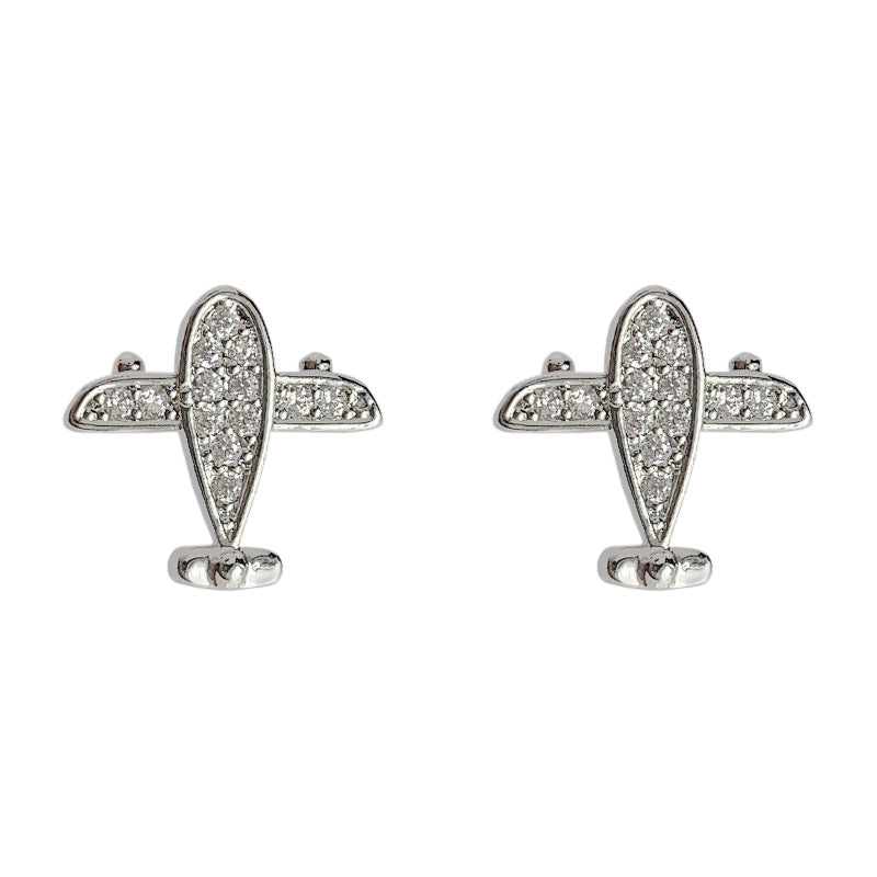 C廠【3802】個性ins微鑲鋯石創意迷你版小巧小飛機耳環新潮2024網紅耳飾 24.04-2