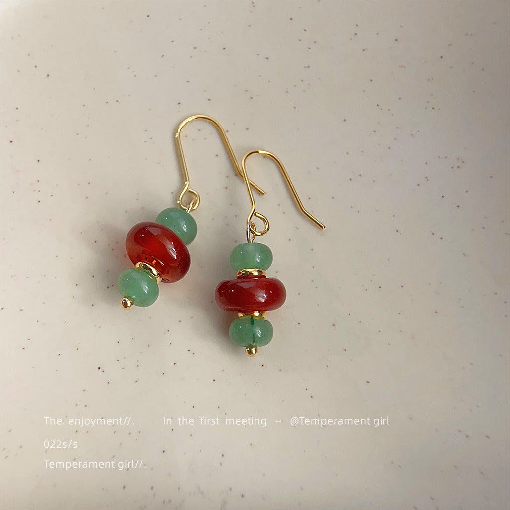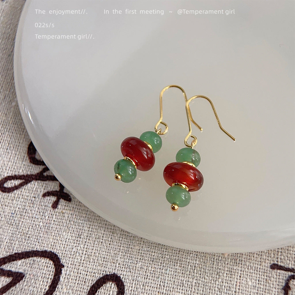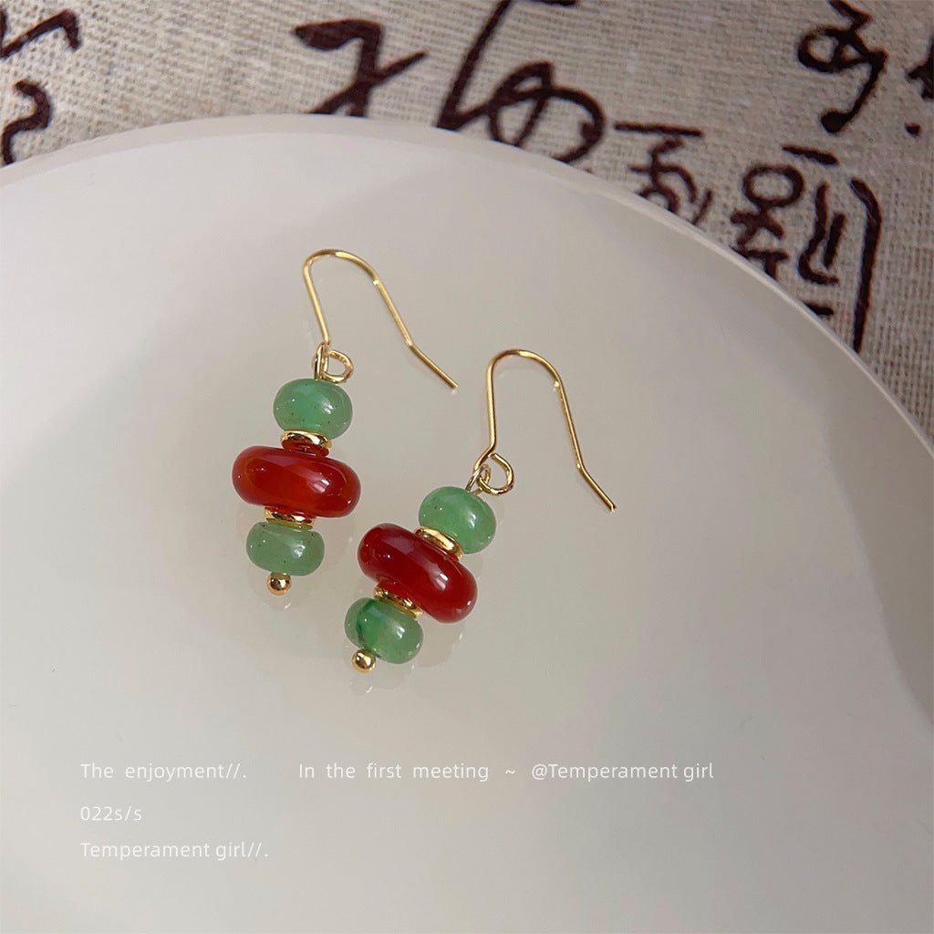 C廠【3824】新中式個性手工創意設計東陵玉天然石耳環2024年新款ins耳環 24.05-3