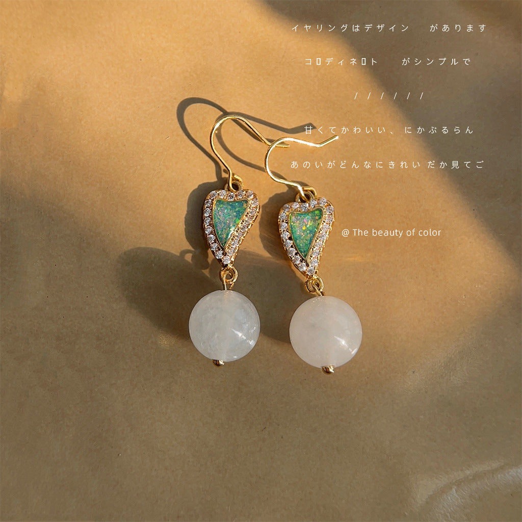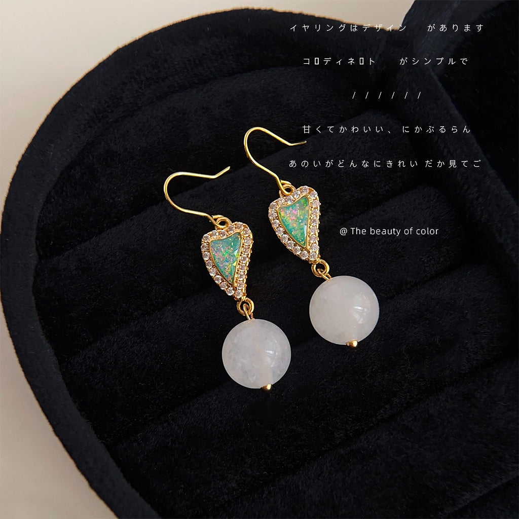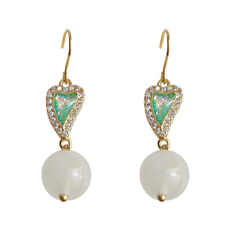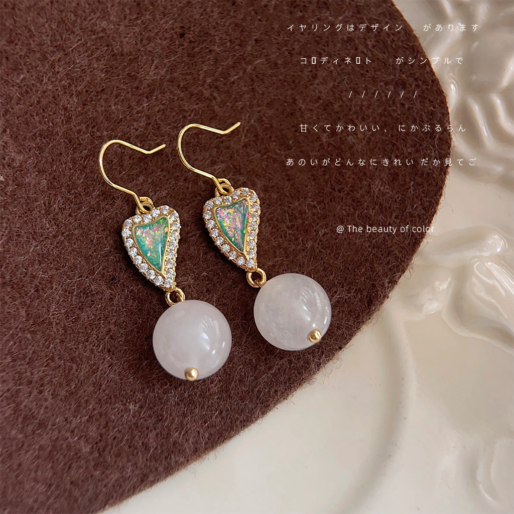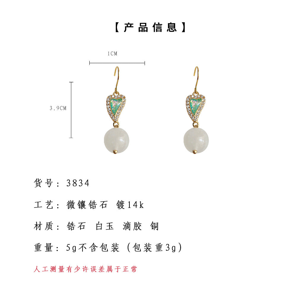 C廠【3834】法式復古手工設計感優雅氣質新潮小眾設計師微鑲鋯石白玉耳飾耳環 24.04-2
