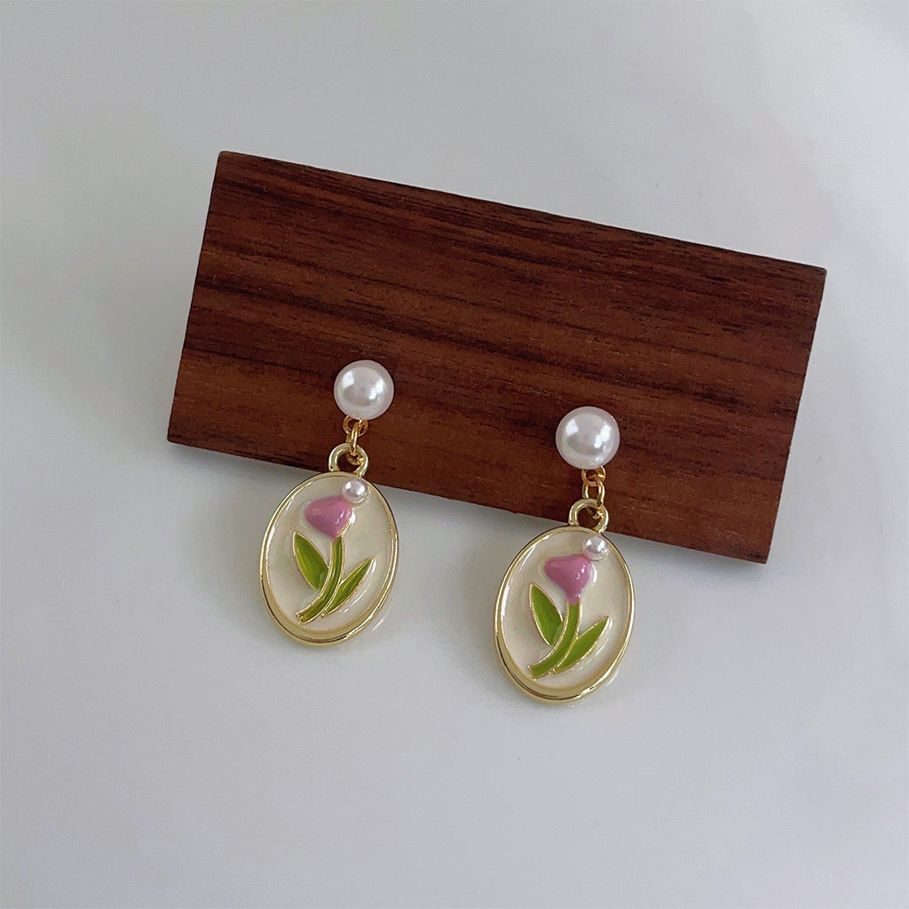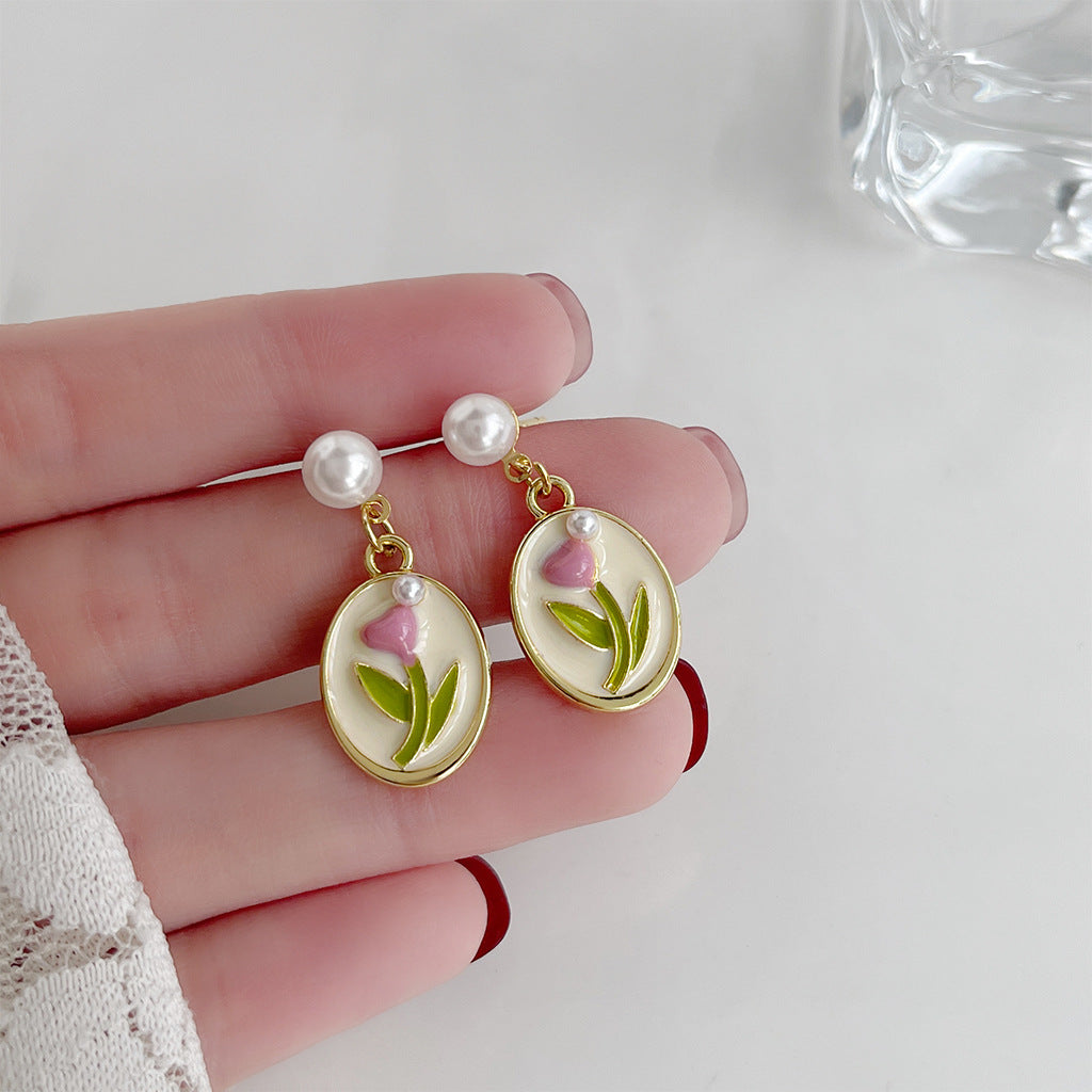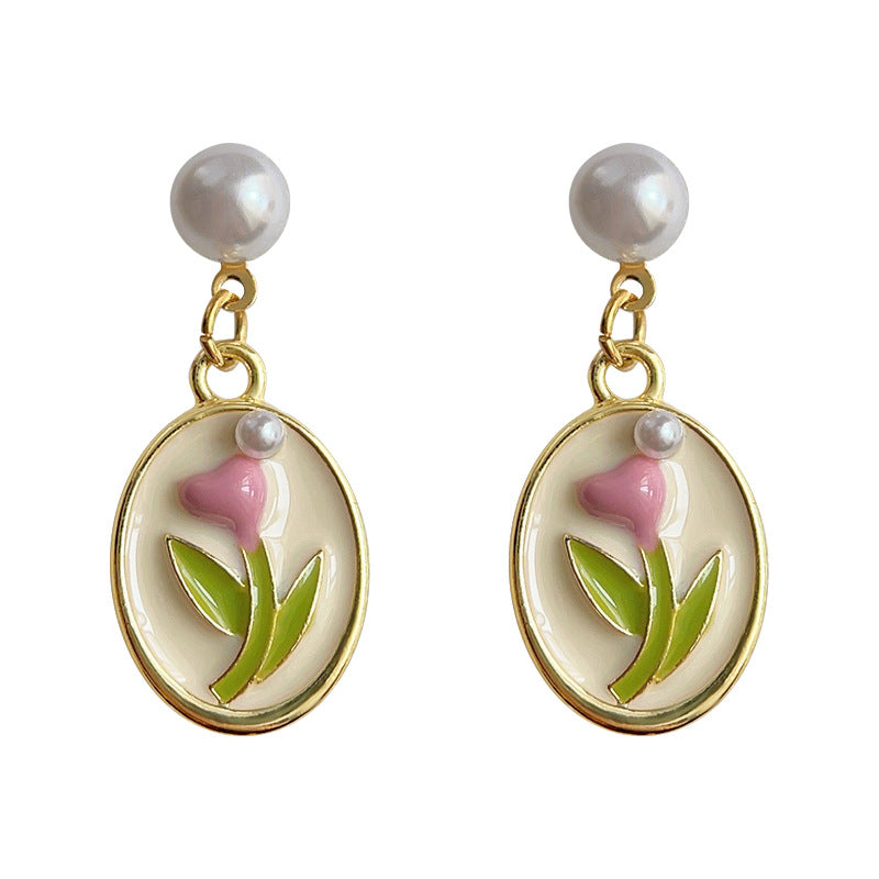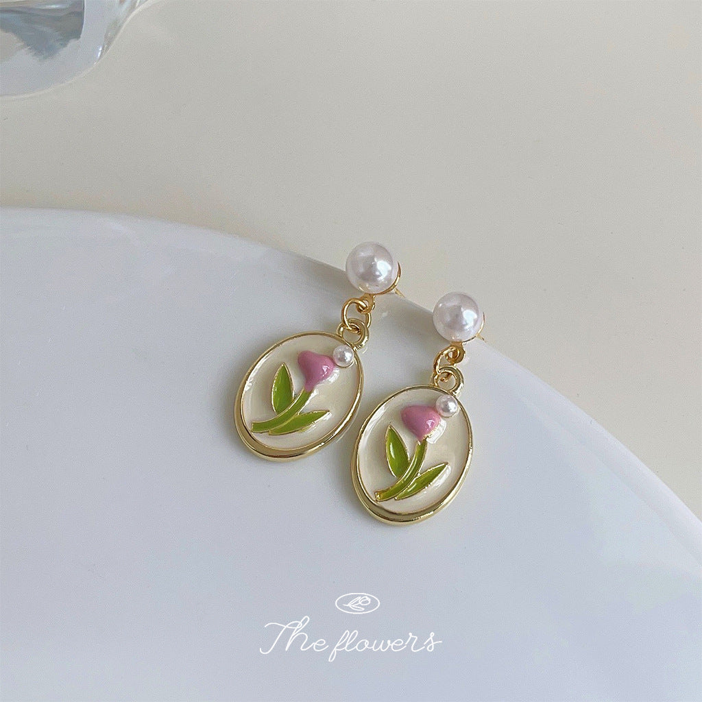 C廠【3836】森系小清新鬱金香滴油鍍14K珍珠耳環女優雅甜美新款設計耳環 24.04-2