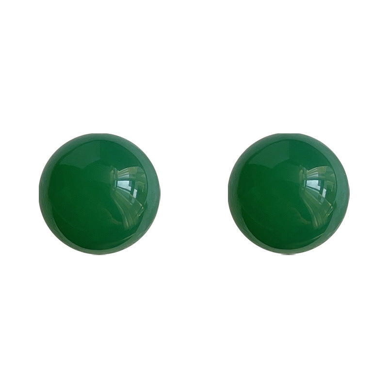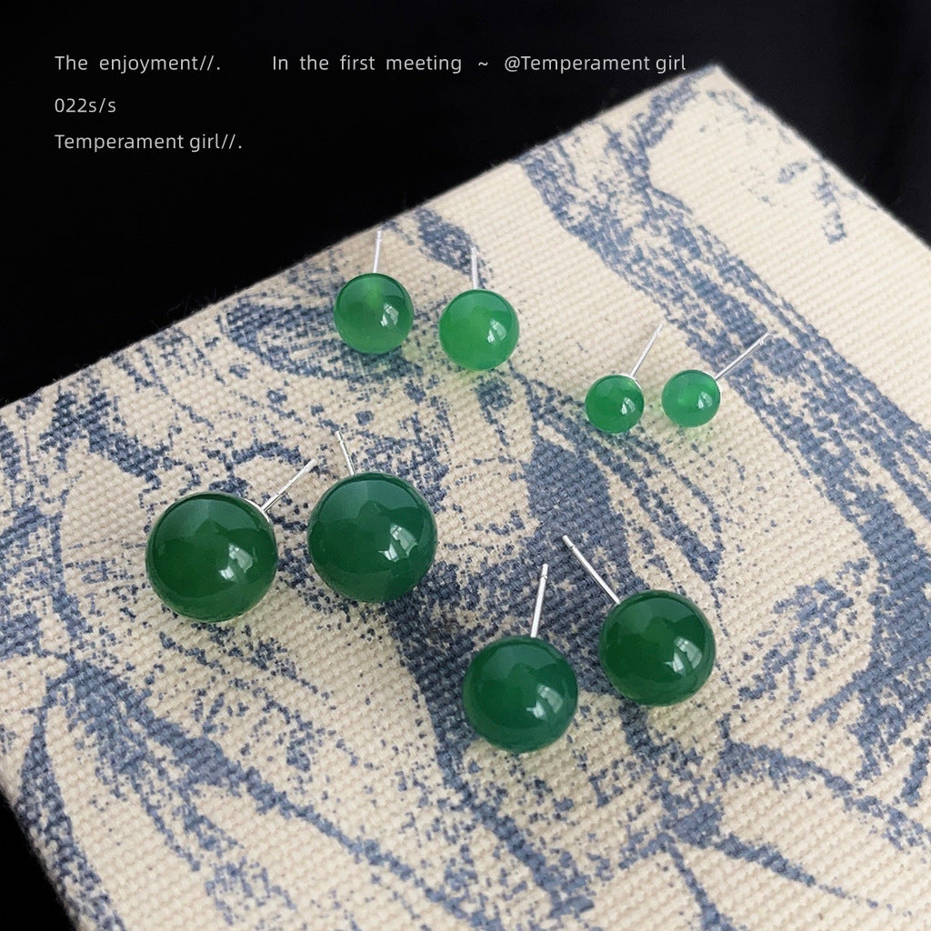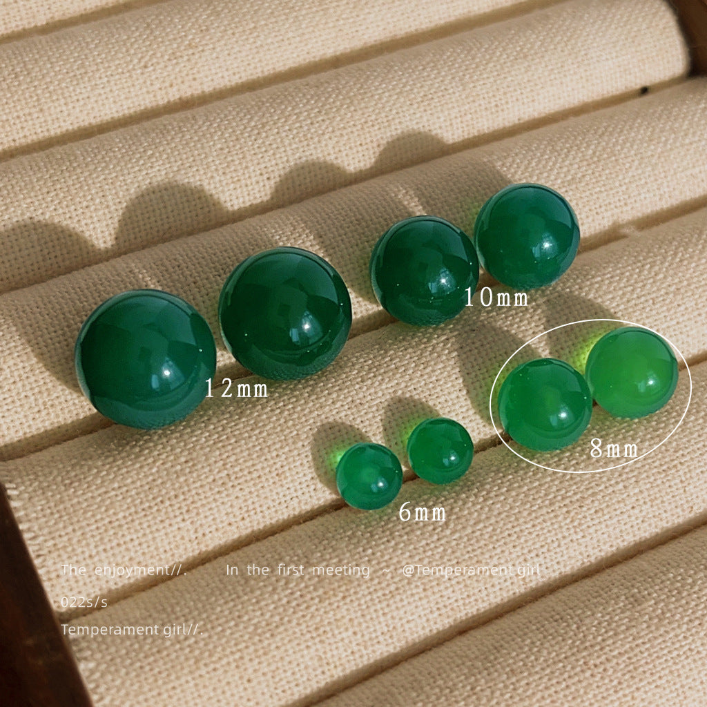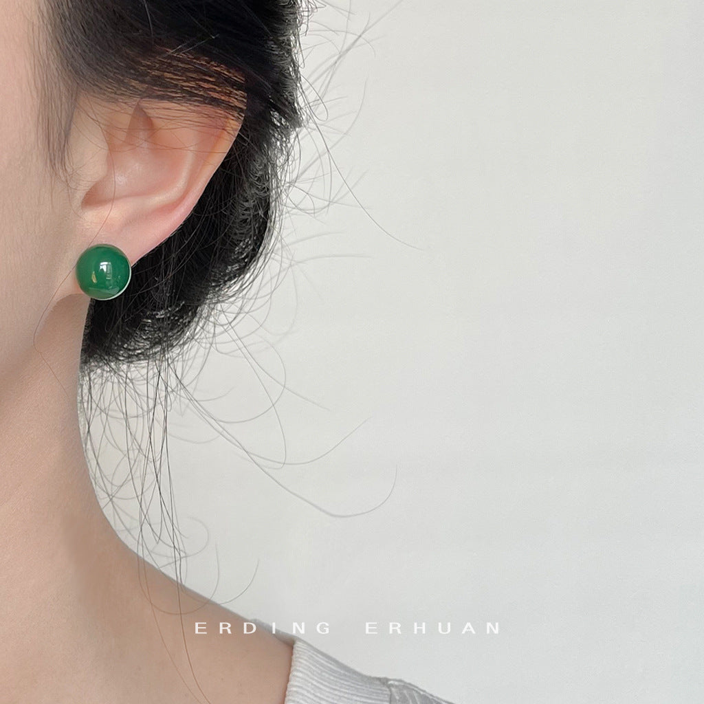 C廠【3837-3840】綠瑪瑙天然石新中式高品質復古宮廷銀針圓球耳環氣質優雅耳飾 24.04-1
