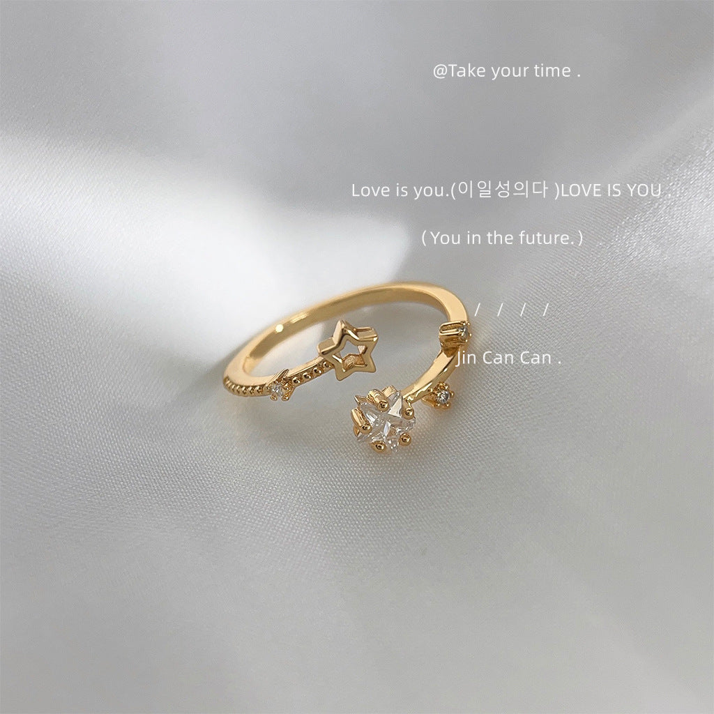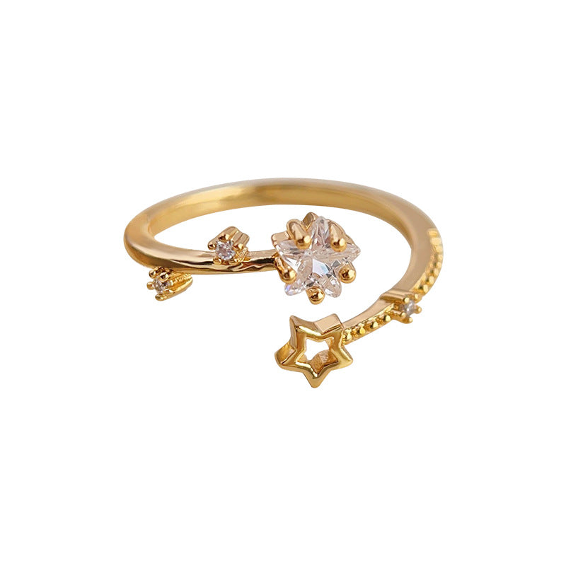 C廠【3845】時尚通勤開口可調式鑲嵌鋯石星星戒指電鍍14K高級感手飾食指戒女 24.04-1