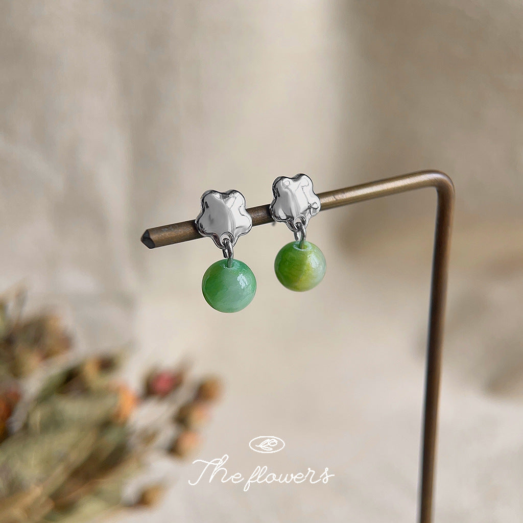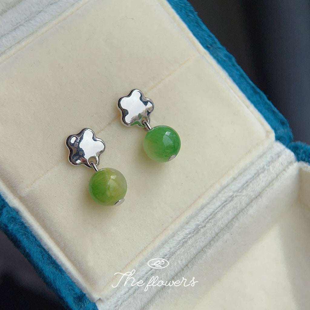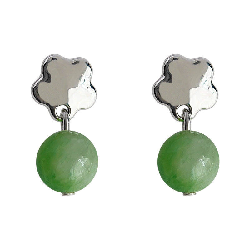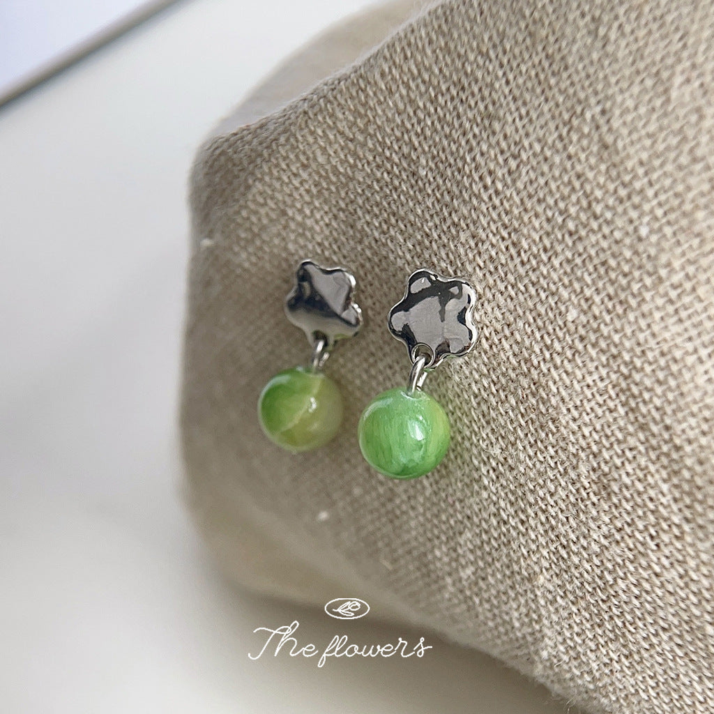 C廠【3856】綠意盎然夏季新款手工設計感森系小清晰幾何天然石耳飾耳環女 24.04-2