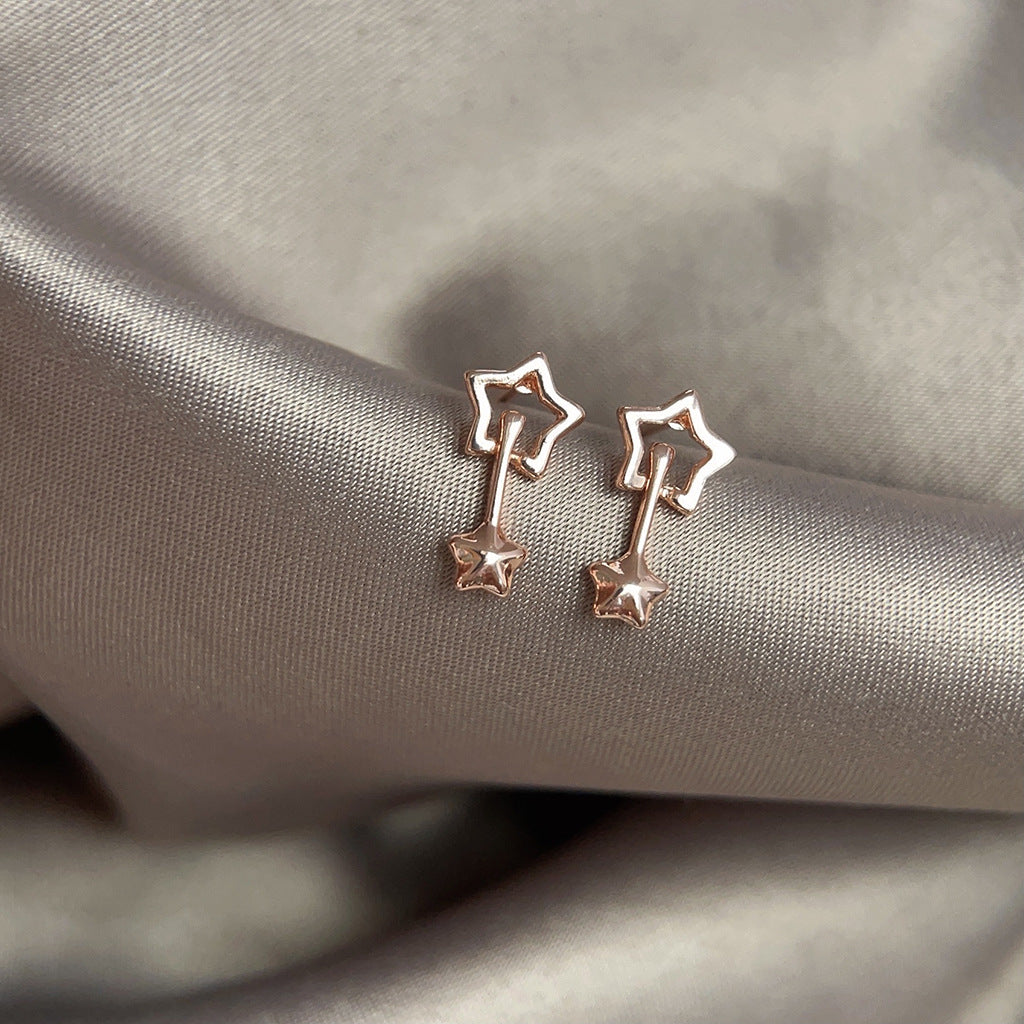 C廠【3866】迷你版電鍍玫瑰金小流星可愛通勤小耳環清新甜美簡約耳飾 24.04-2