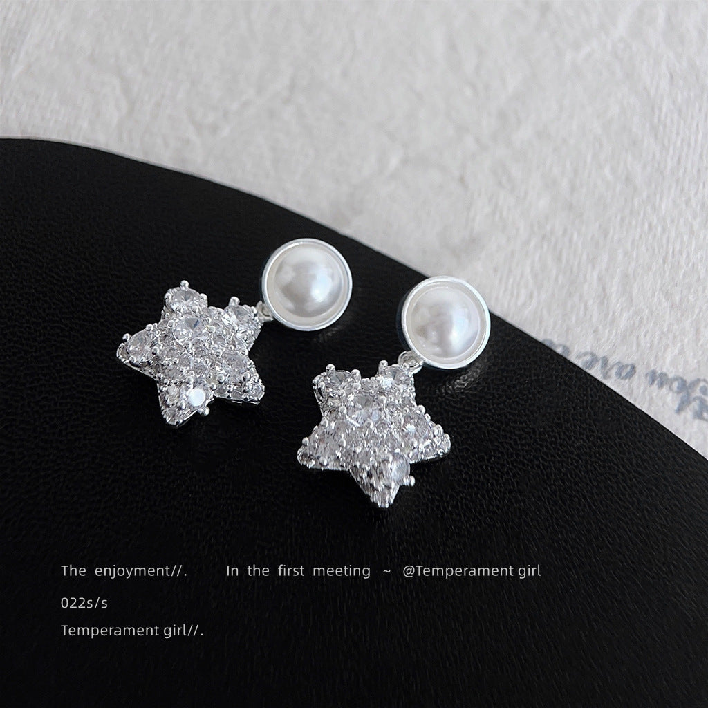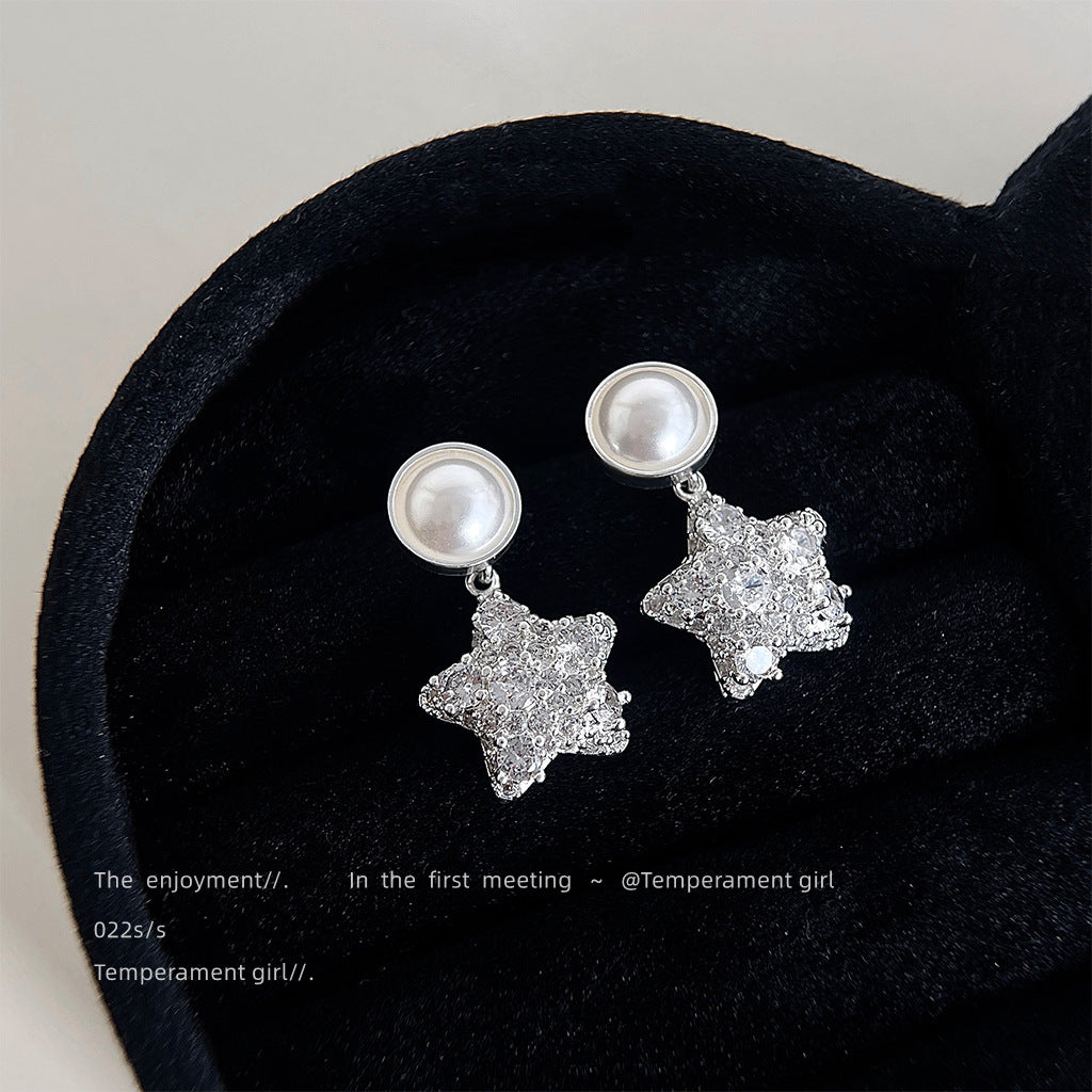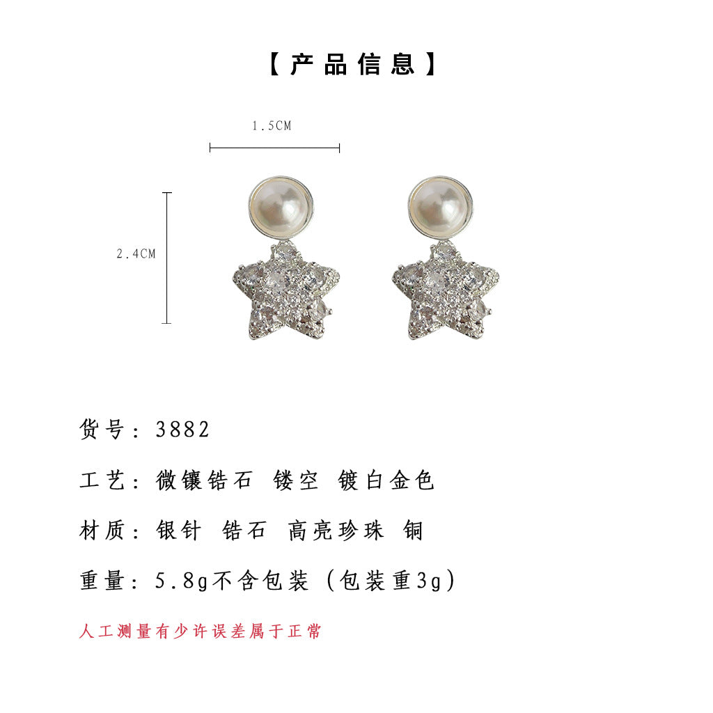 C廠【3882】實物很閃微鑲鋯石立體五角星新潮個性設計感耳飾銀針耳環飾品 24.04-3