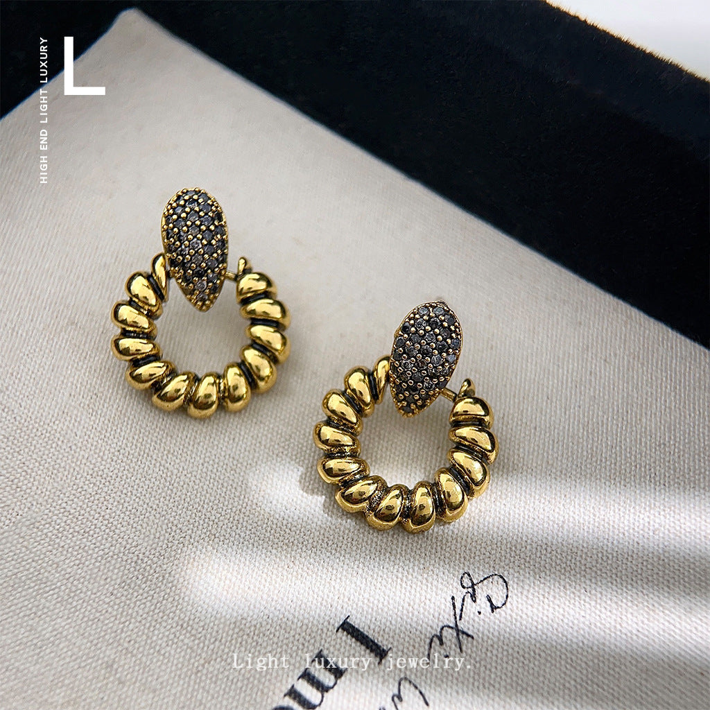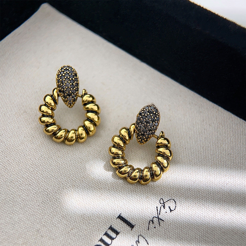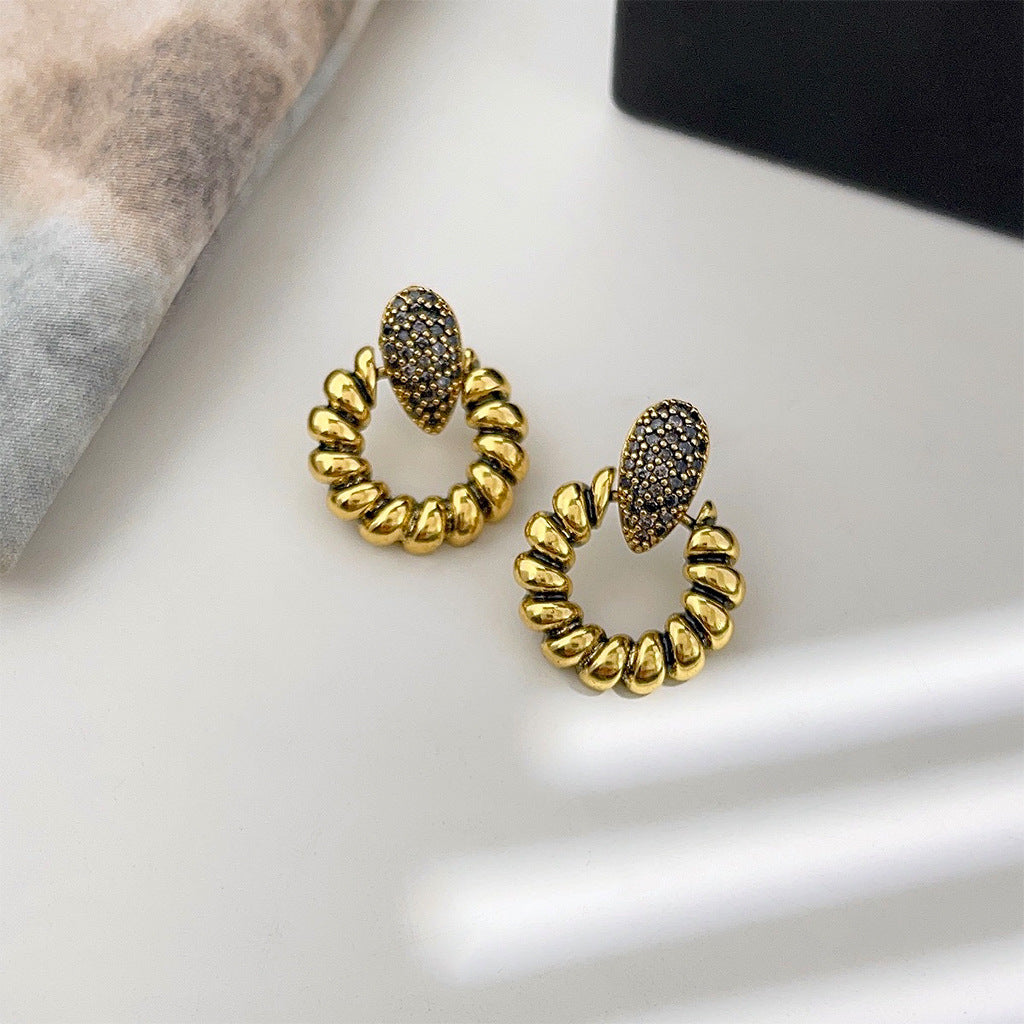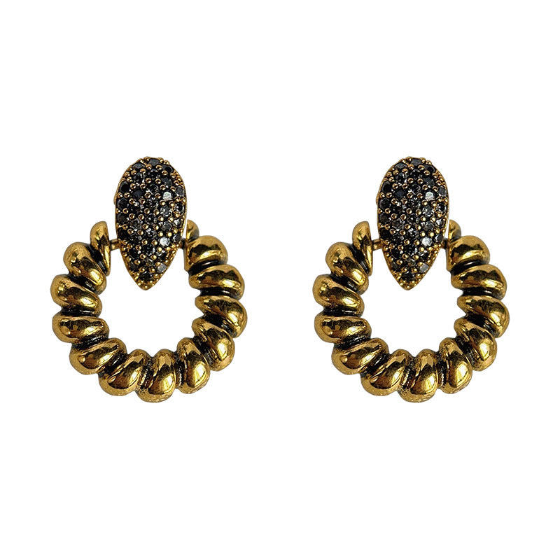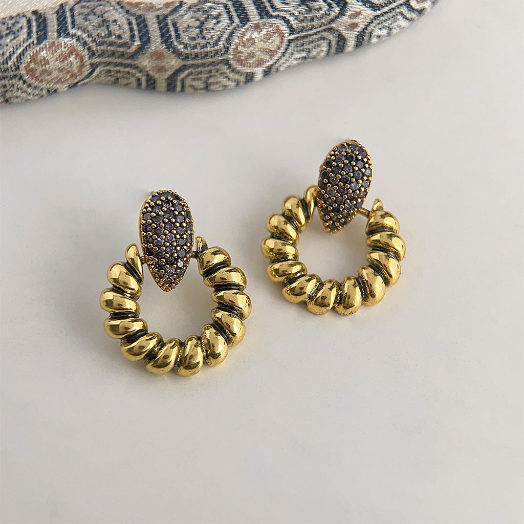C廠【3894】微鑲鋯石重工質感復古做舊時尚設計感幾何高級感耳飾耳環 24.04-2