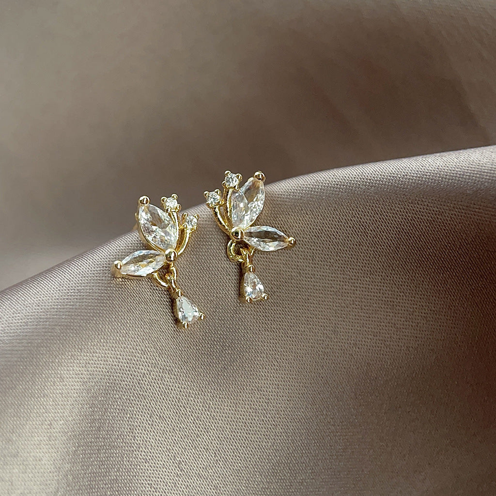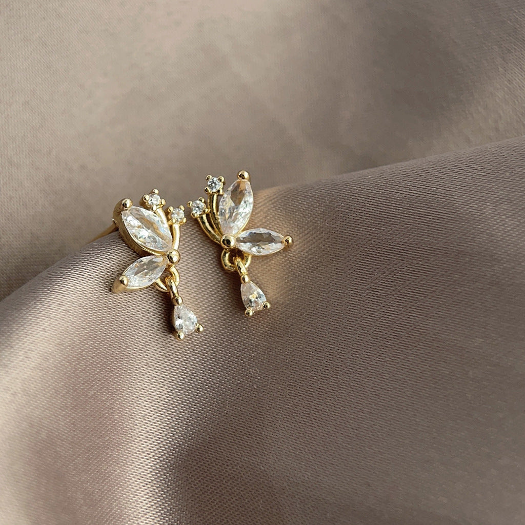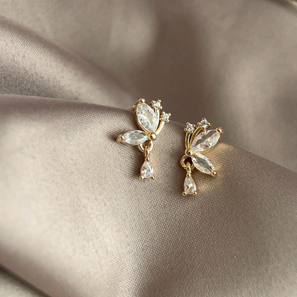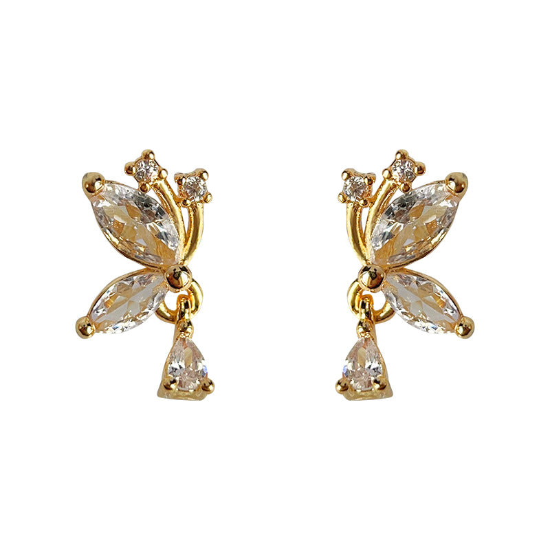 C廠【3895】微鑲鋯石蝴蝶鍍14K銀針氣質簡約通勤百搭優雅耳飾耳釘 24.04-2