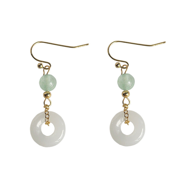 C廠【3899】優雅溫柔新中式溫婉玻璃白玉耳飾電鍍14K手工耳環 24.04-4