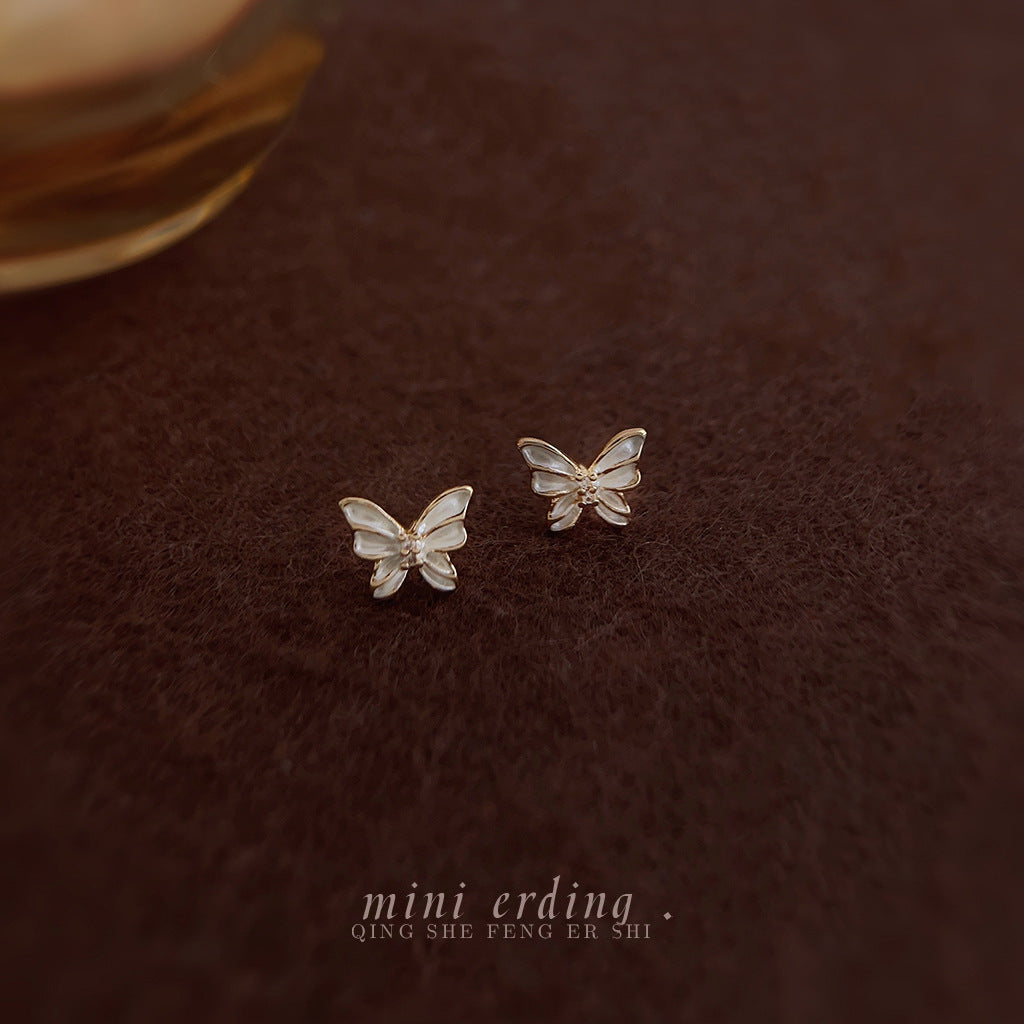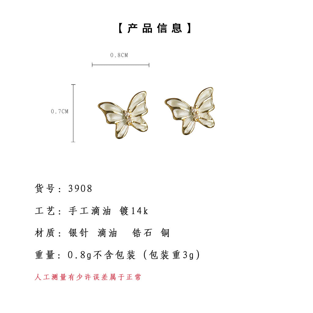 C廠【3908】森系超仙迷你版清新小蝴蝶微鑲鋯石日常通勤簡約百搭耳飾 24.04-4