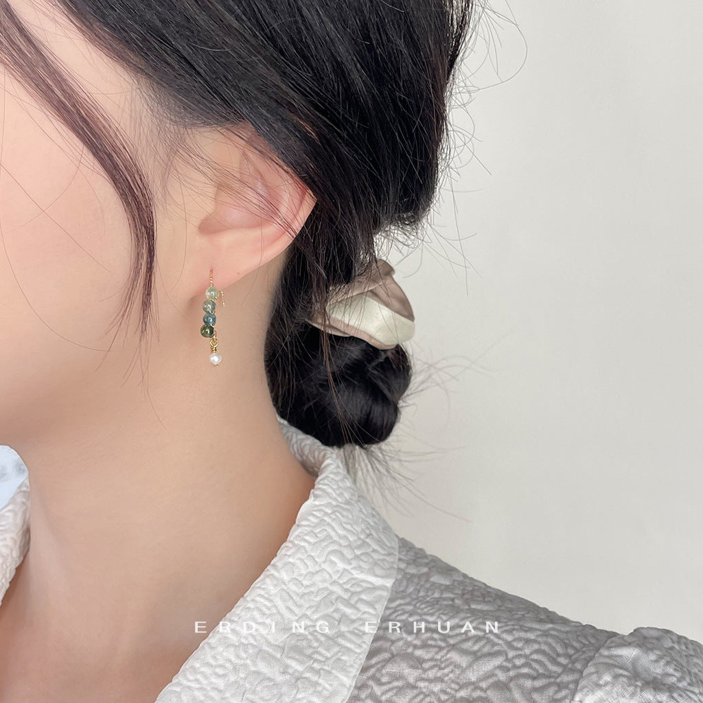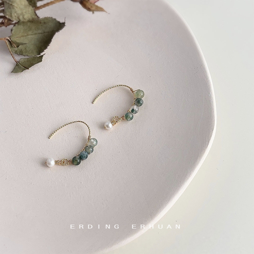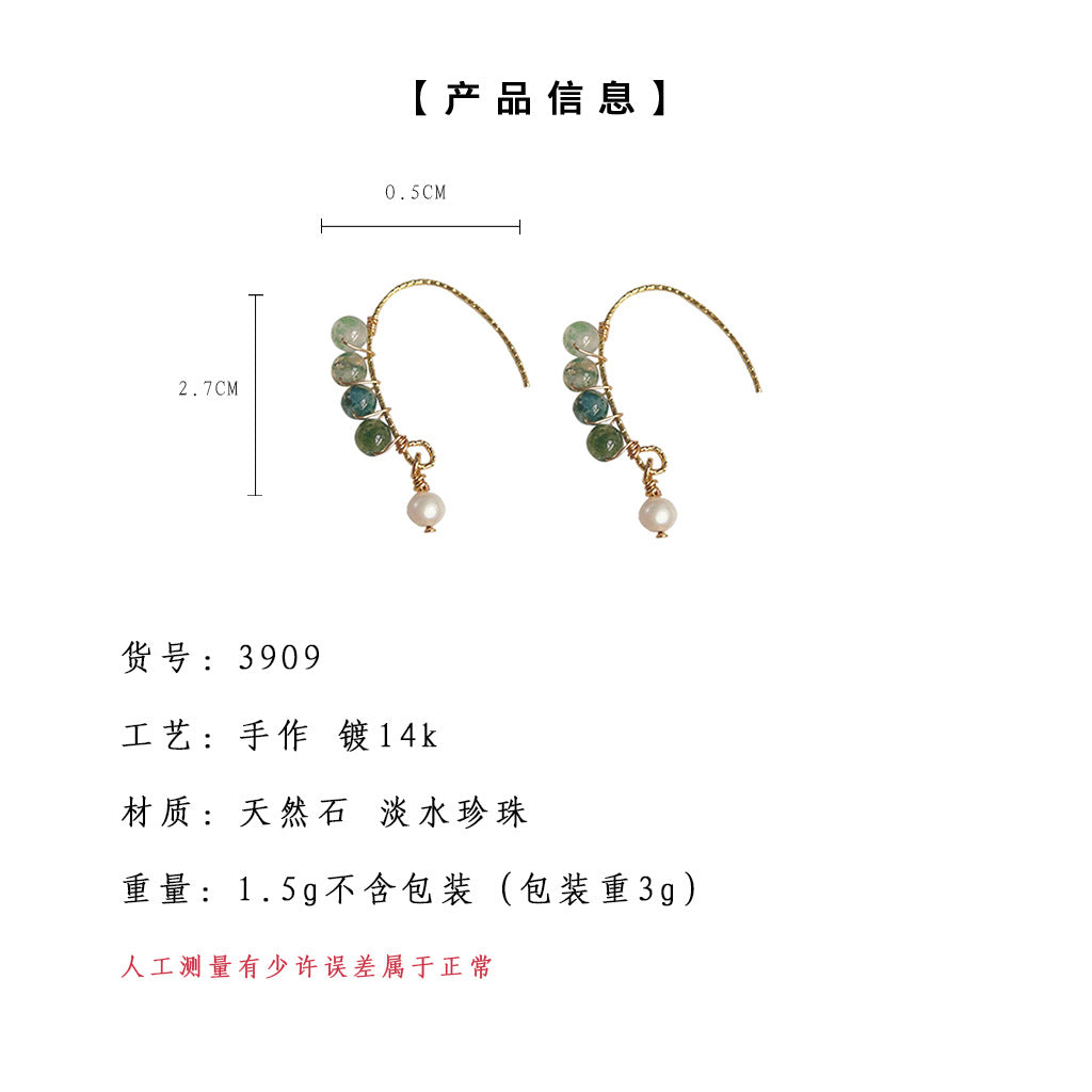 C廠【3909】天然石綠水草森系小清新原創手工設計感耳飾女鍍14K極簡耳環 24.05-1