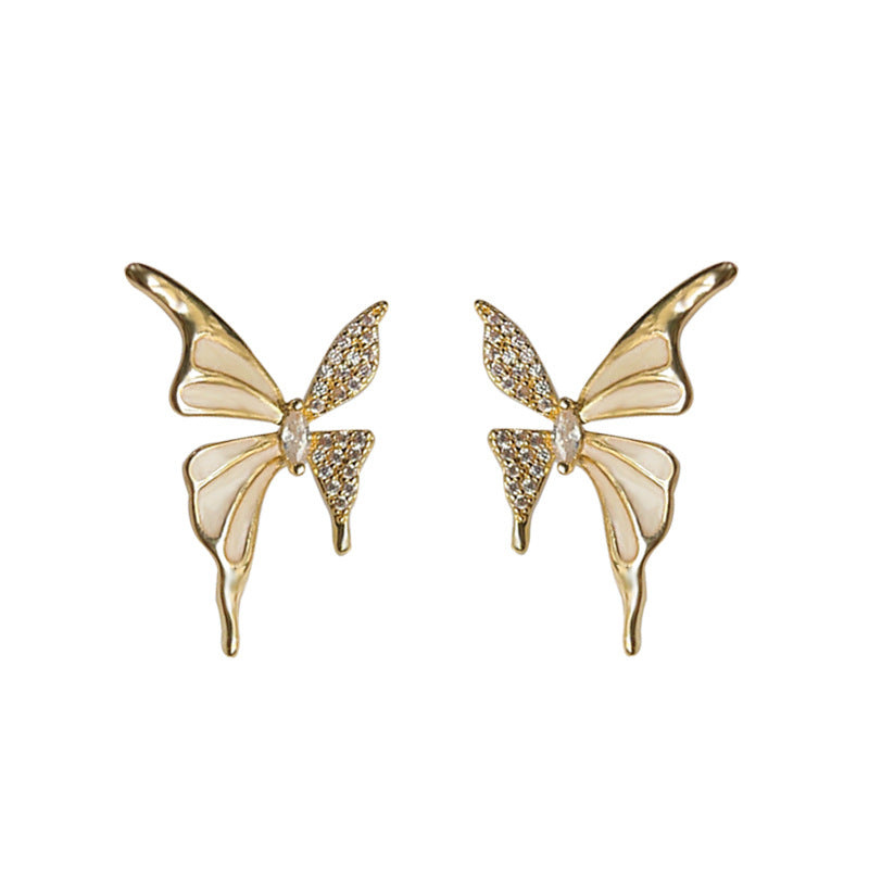 C廠【3912】微鑲鋯石優雅氣質超仙甜美個性蝴蝶滴油琺瑯質感電鍍14K耳飾 24.04-4