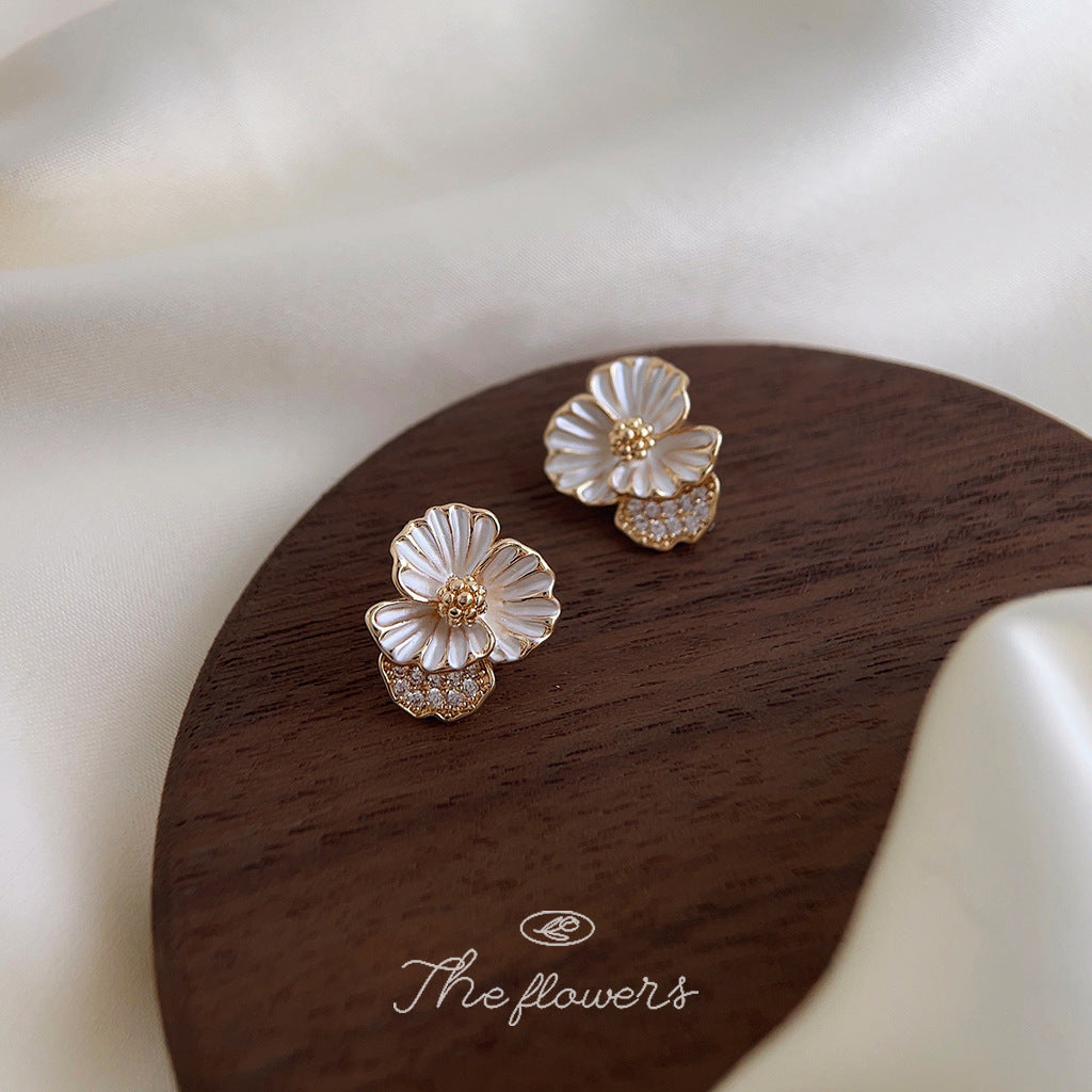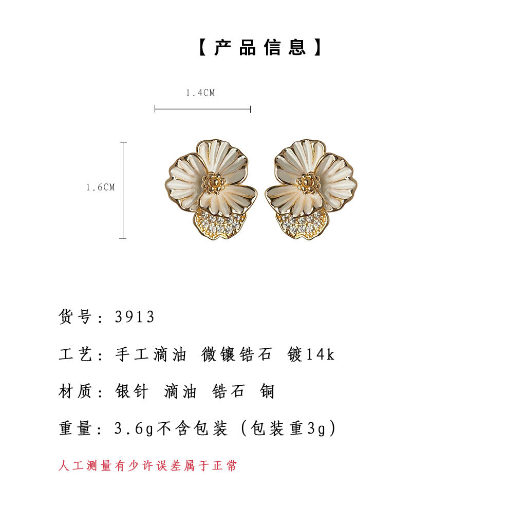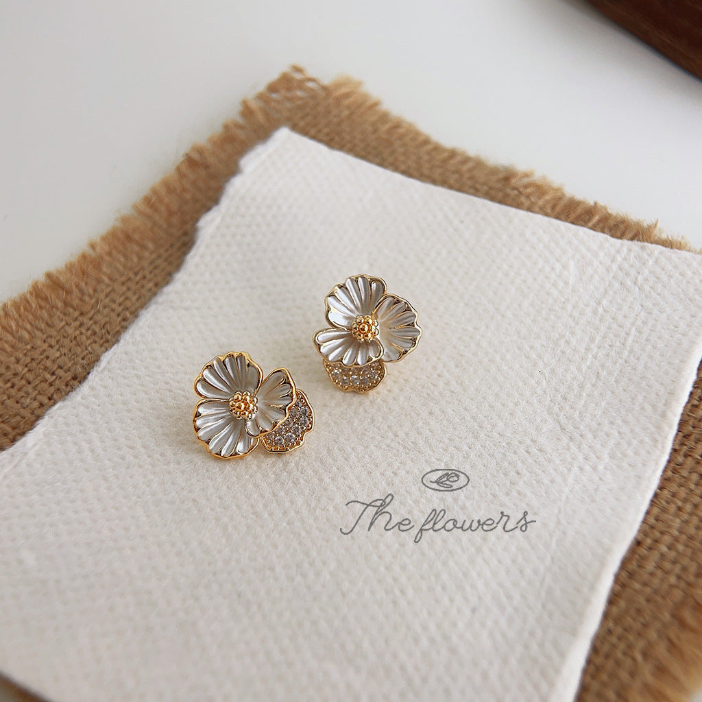 C廠【3913】鳶尾花森系小清新甜美氣質優雅小香風微鑲鋯石電鍍14K耳環女耳飾 24.05-1