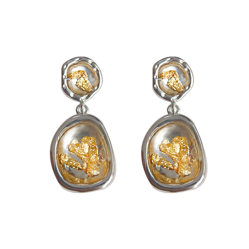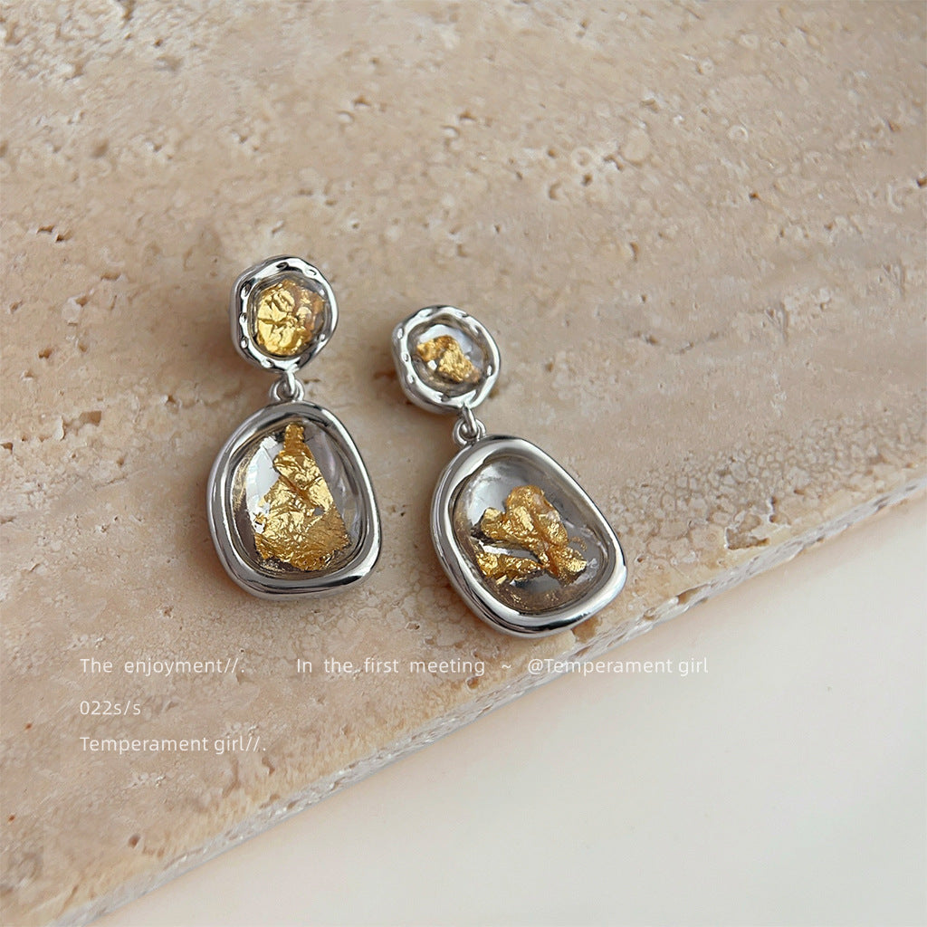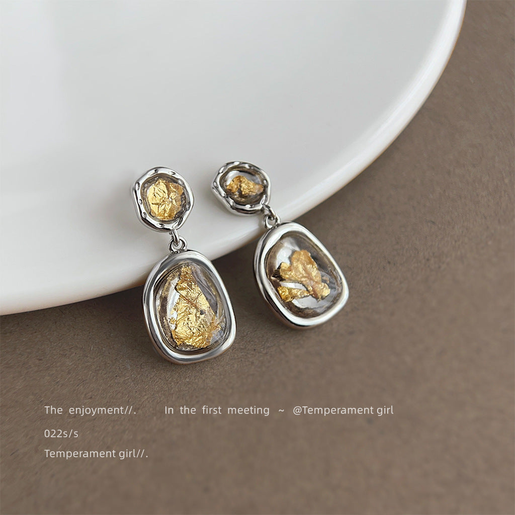 C廠【3915】設計師款~冷淡風高級感幾何金箔紙質感手工滴釉透明耳飾 24.05-5