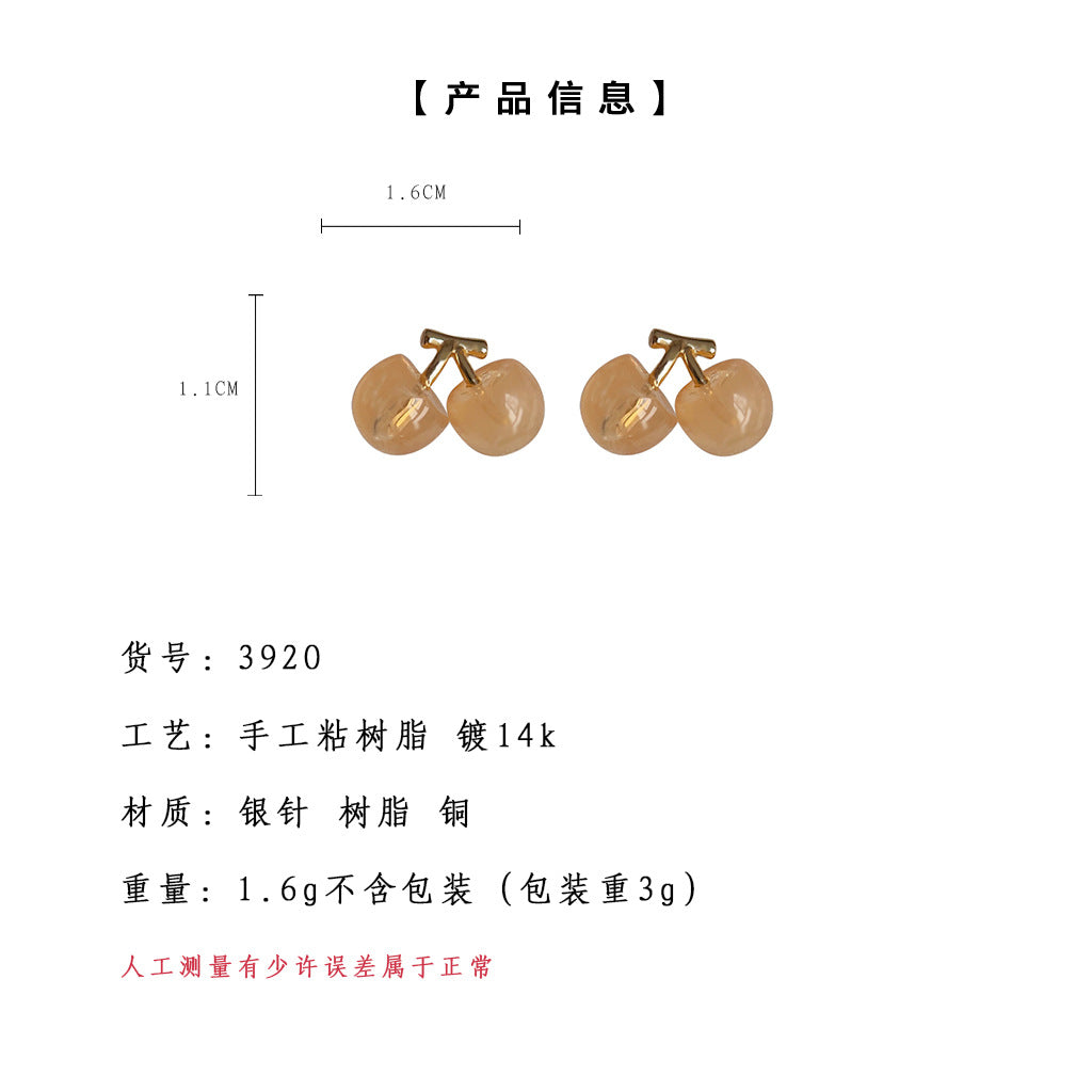 C廠【3920】夏日小清新可愛小櫻桃甜美百搭電鍍14K通勤耳環氣質新款耳飾 24.04-4