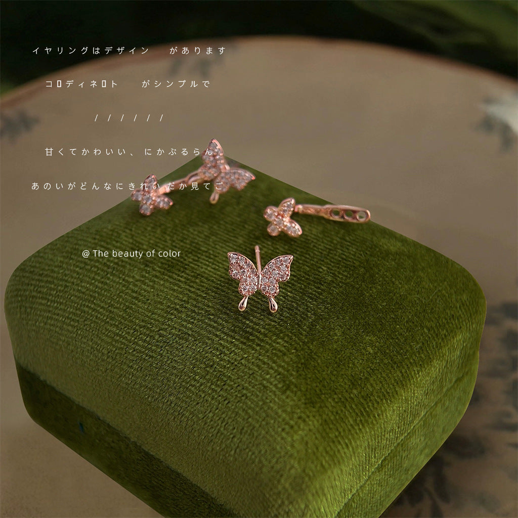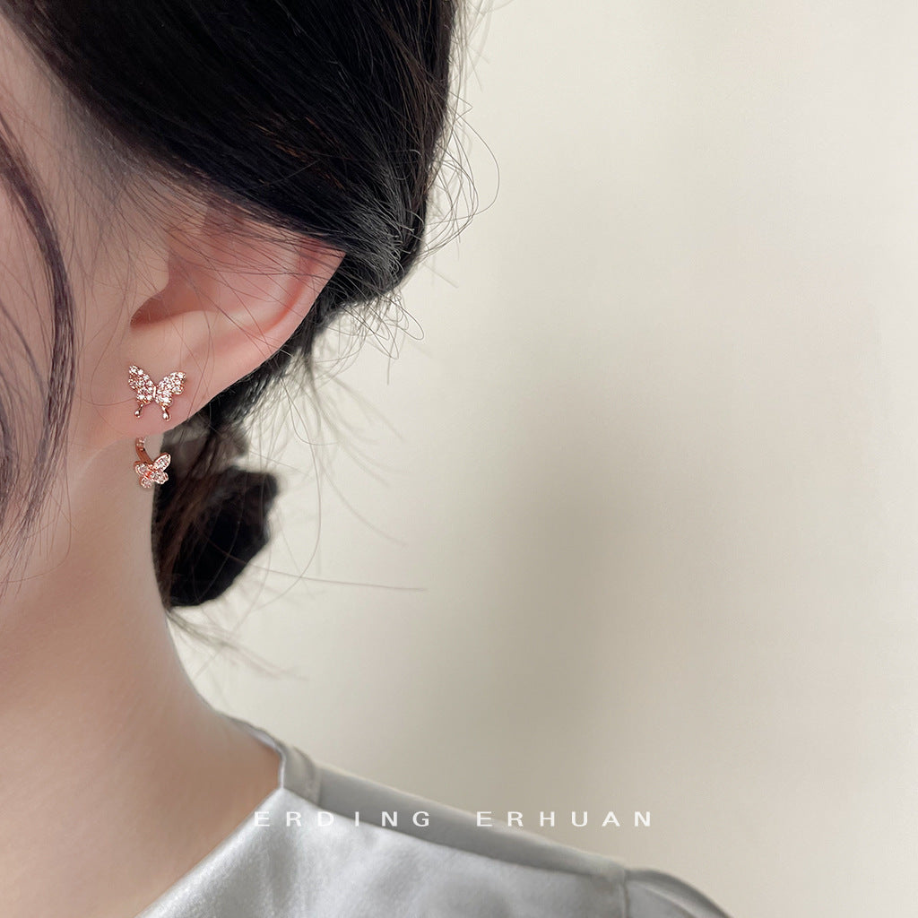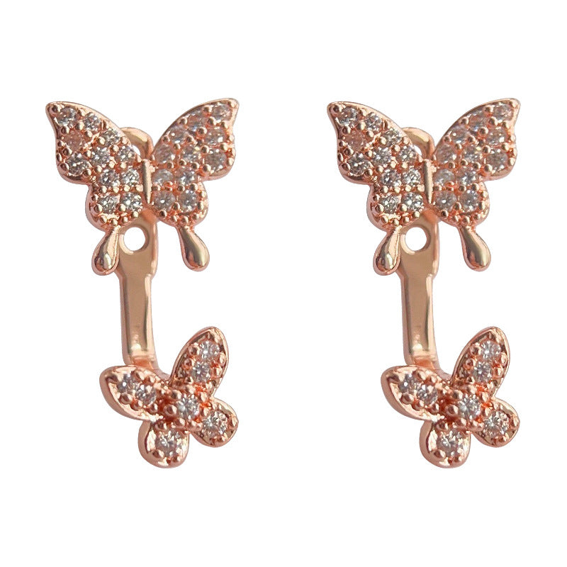 C廠【3922】這款上耳效果美爆~微鑲鋯石一款兩戴蝴蝶鍍玫瑰金耳飾女優雅耳環 24.05-3