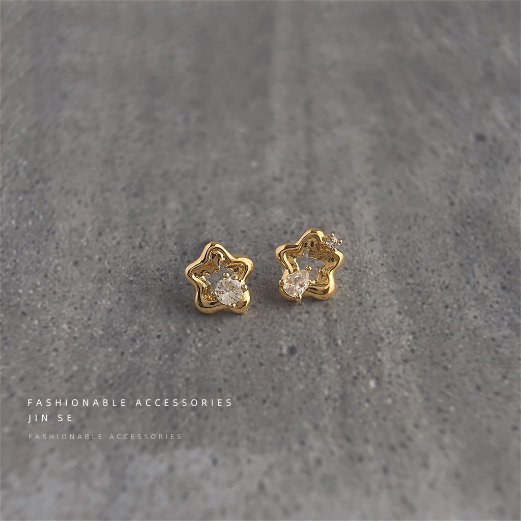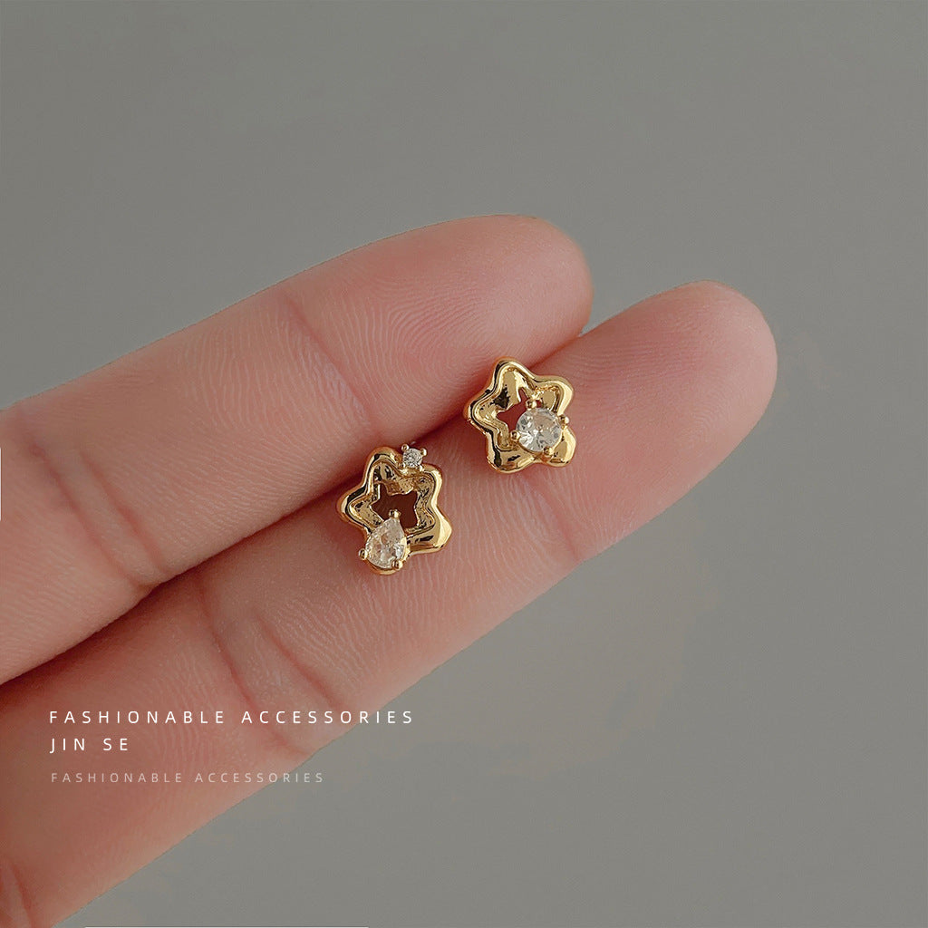 C廠【3926】輕奢風高級感微鑲鋯石迷你版鏤空小花朵耳環氣質通勤簡約新款耳飾 24.05-1