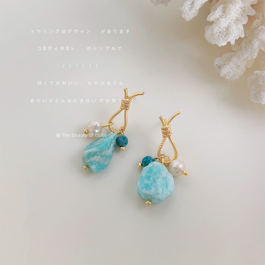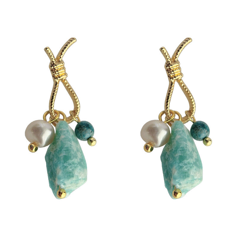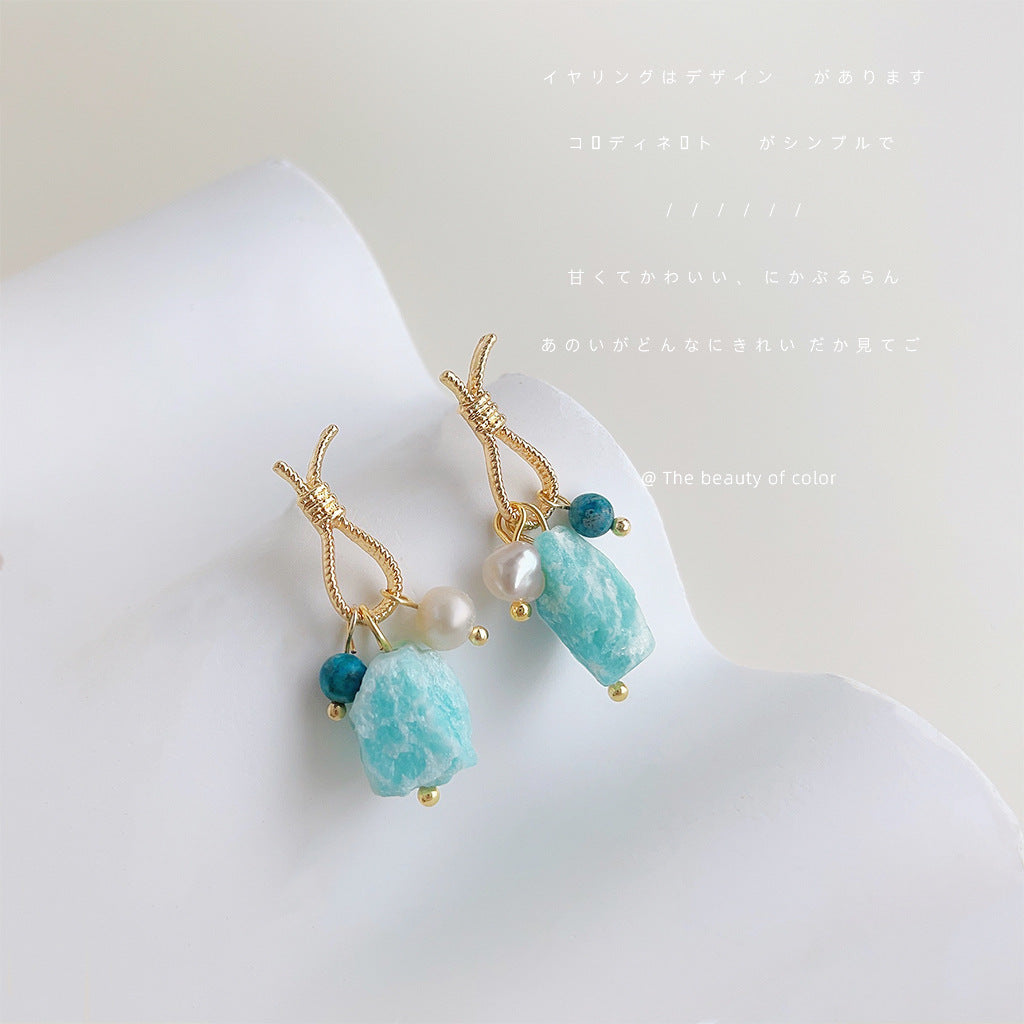 C廠【3940】天然石原創設計手工耳環女鍍14K新輕奢風高級感銀針耳環 24.05-3