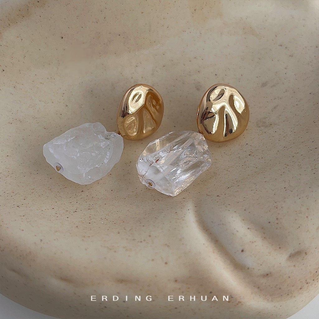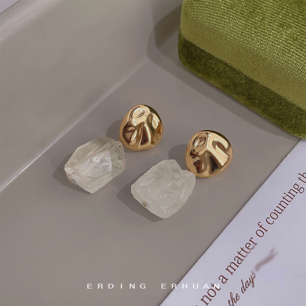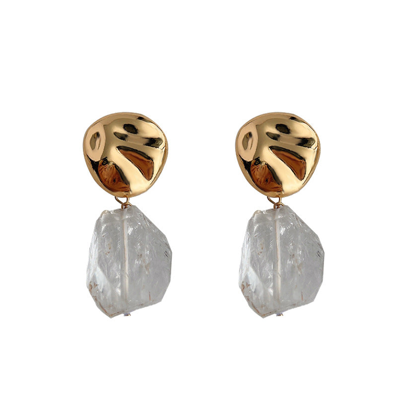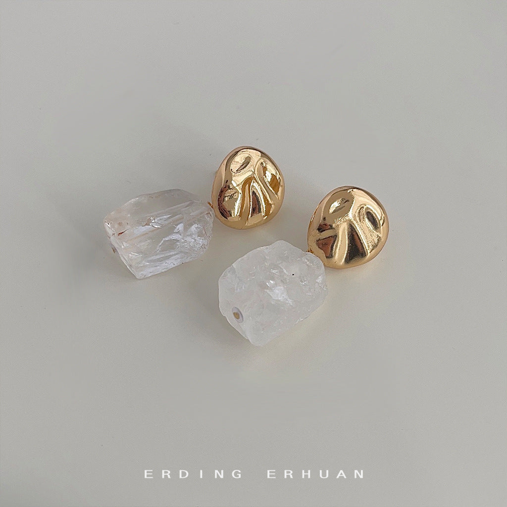 C廠【3952】白水晶天然石時尚通勤高級感鍍14K手工藝新款耳環氣質優雅耳環 24.05-3