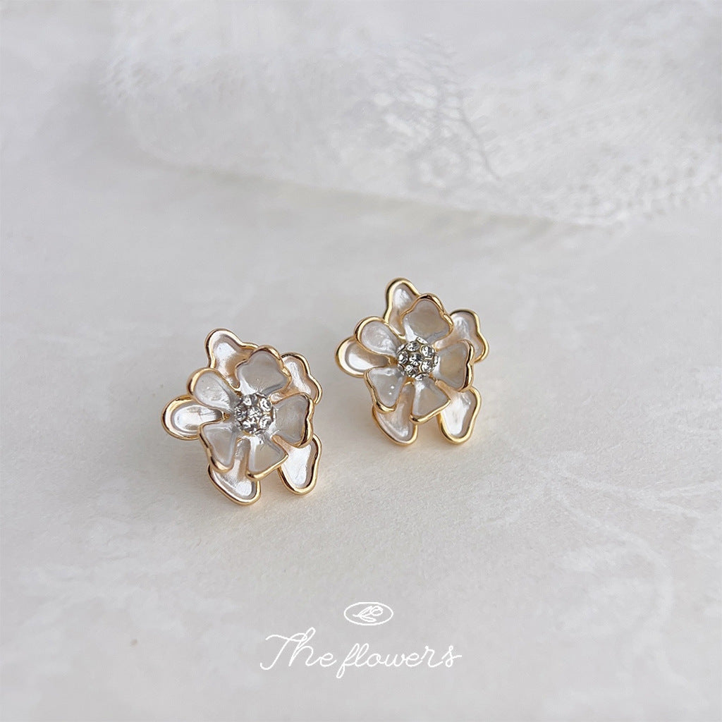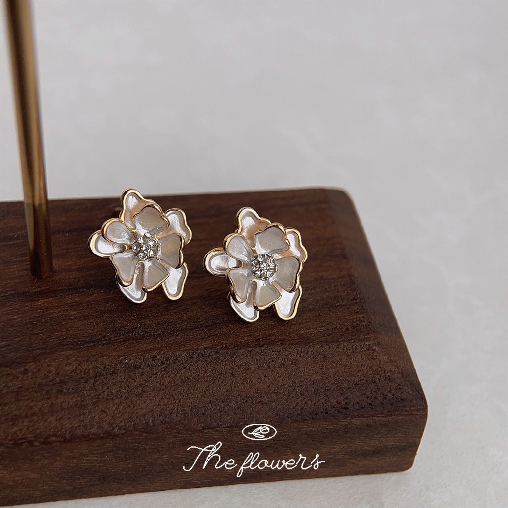 C廠【3977】森系超仙氣質甜美鍍14K通勤百搭時尚2024新款耳環花朵山茶花耳飾 24.05-3