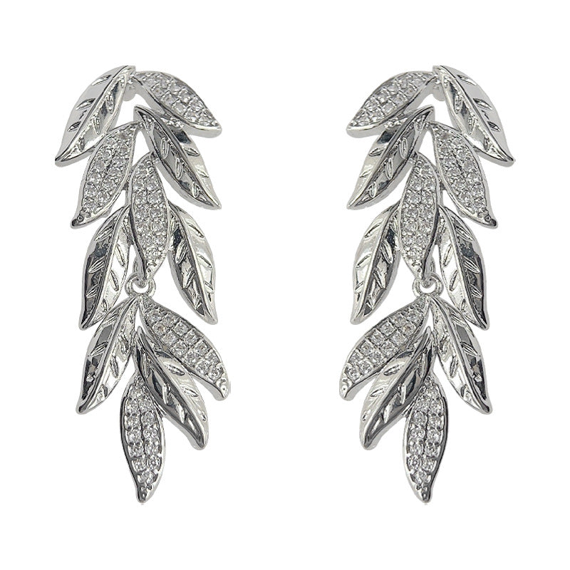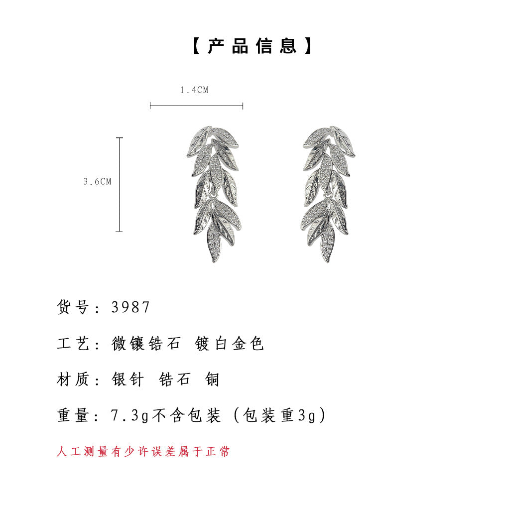 C廠【3987】微鑲鋯石重工質感樹葉款銀針耳飾女氣質優雅高級感晚宴耳環 24.05-2