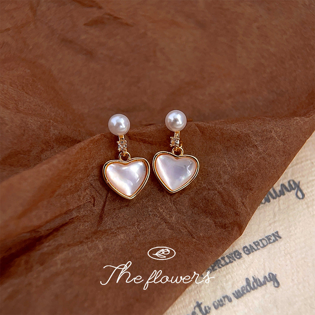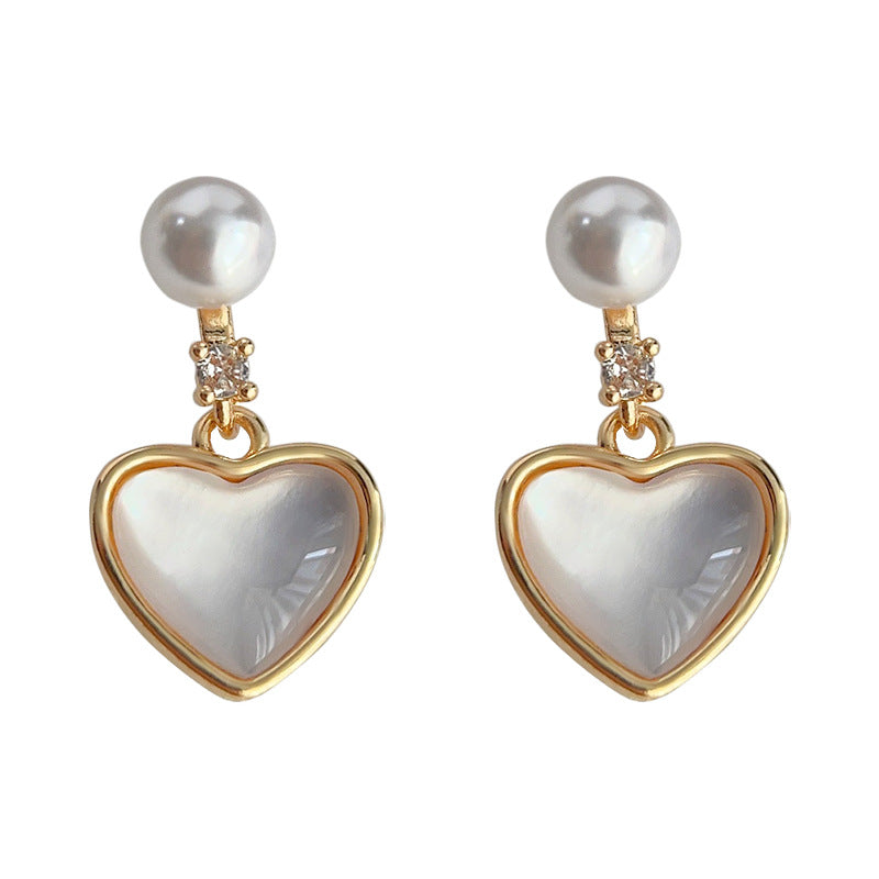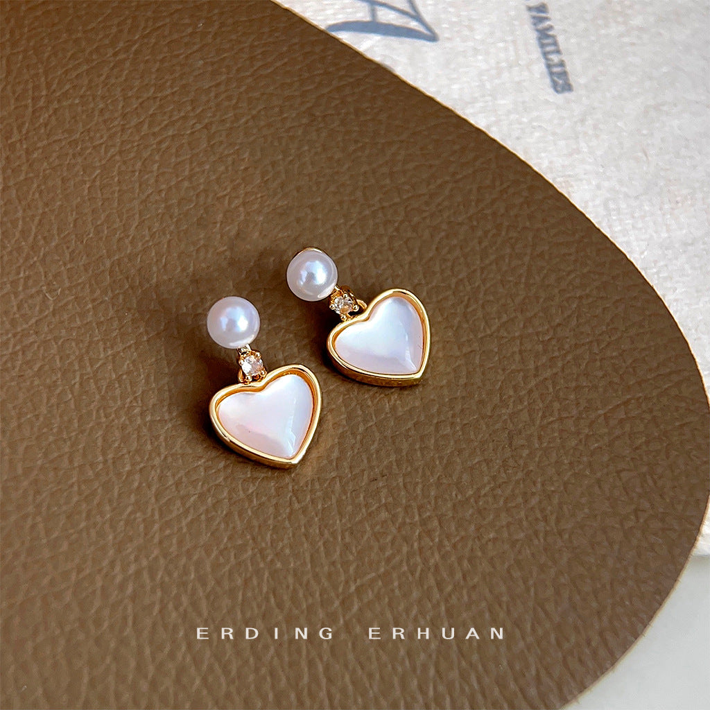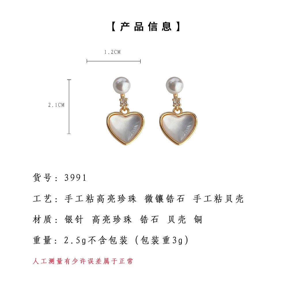 C廠【3991】輕奢風高級感微鑲鋯石貝殼愛心電鍍14K銀針耳環氣質簡約通勤耳飾 24.05-4
