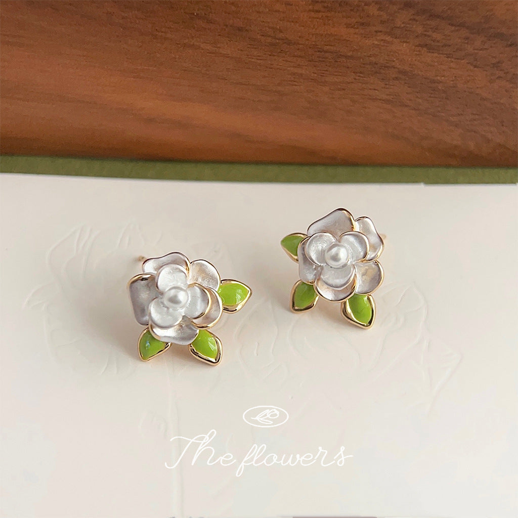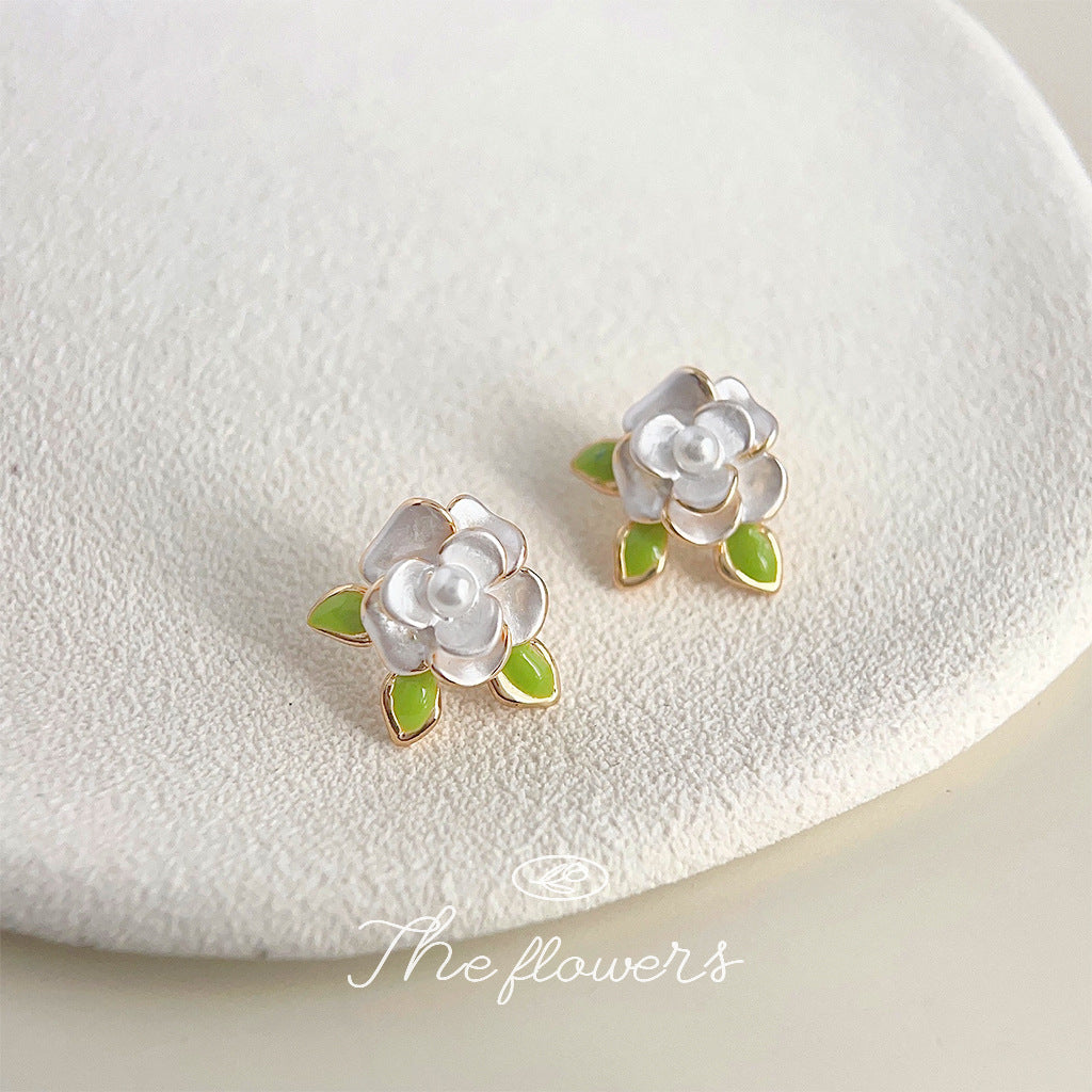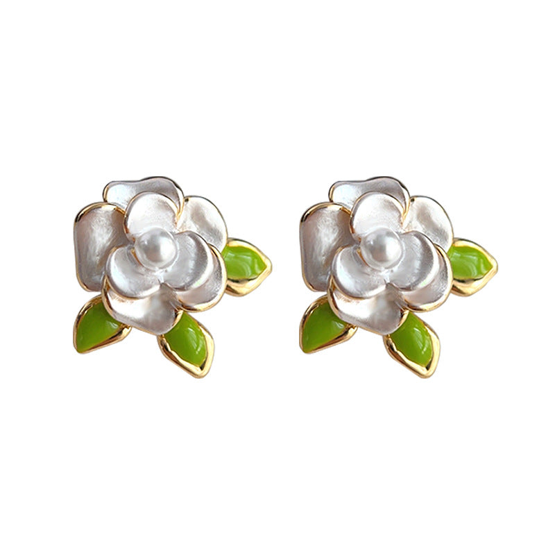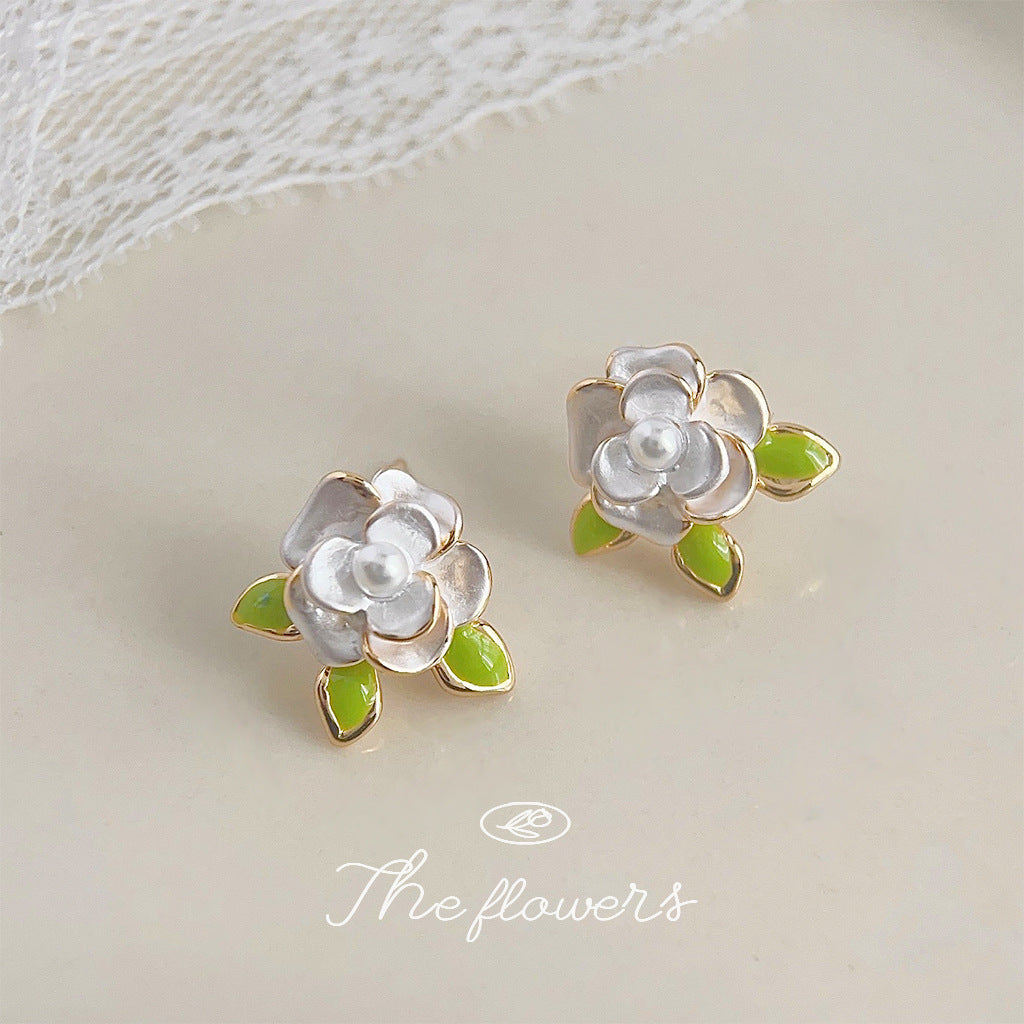 C廠【4002】森系小清新山茶花清新甜美氣質電鍍14K耳環2024年新款耳環女 24.05-3