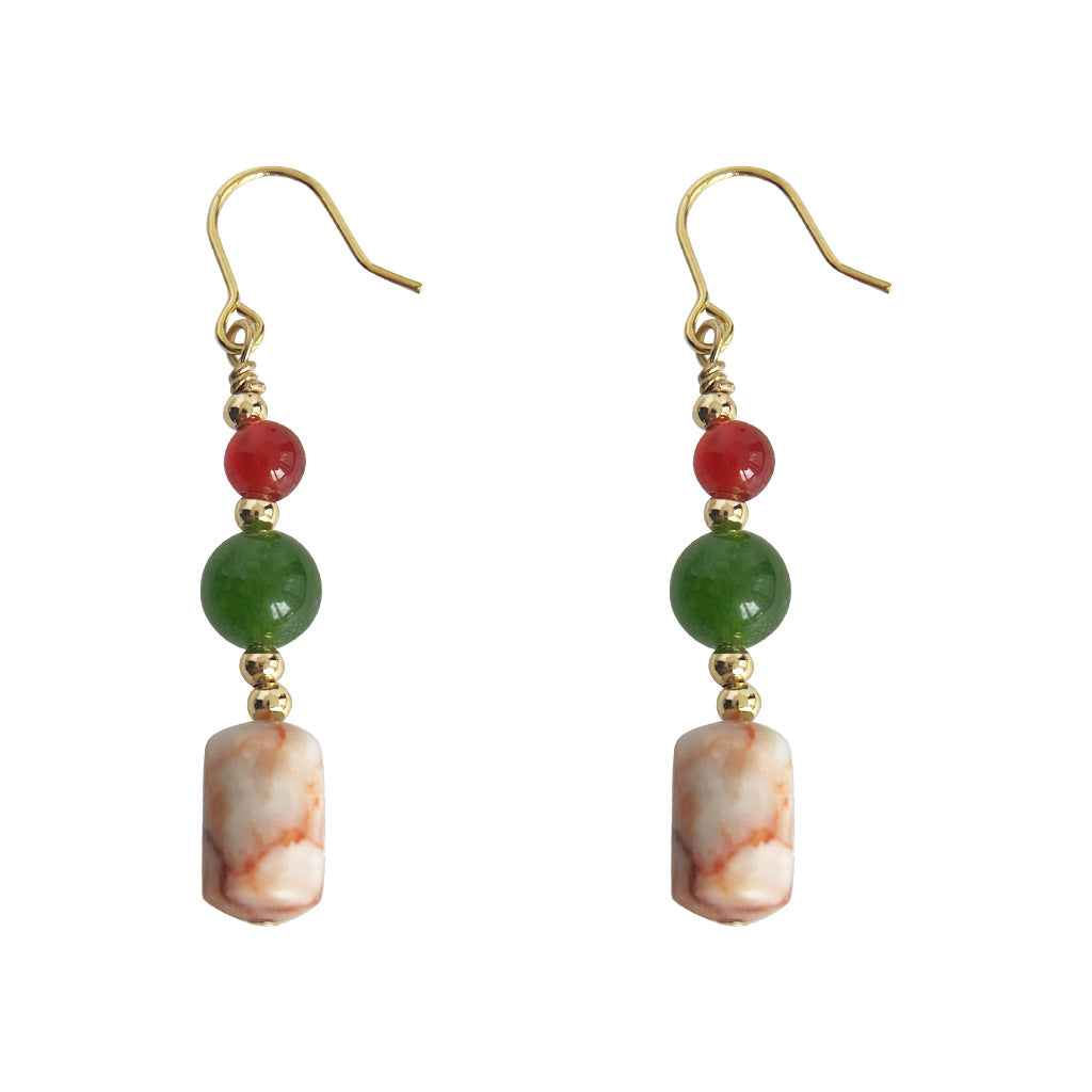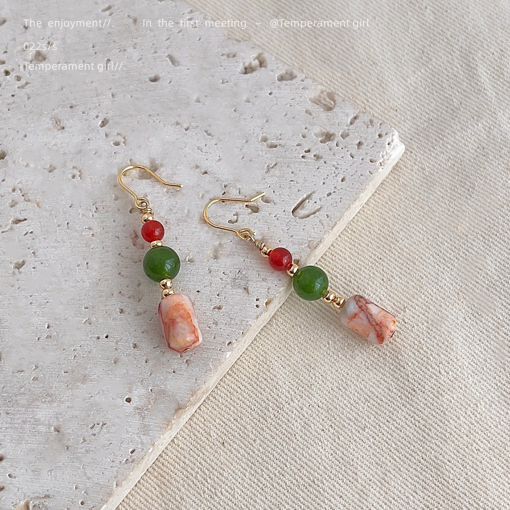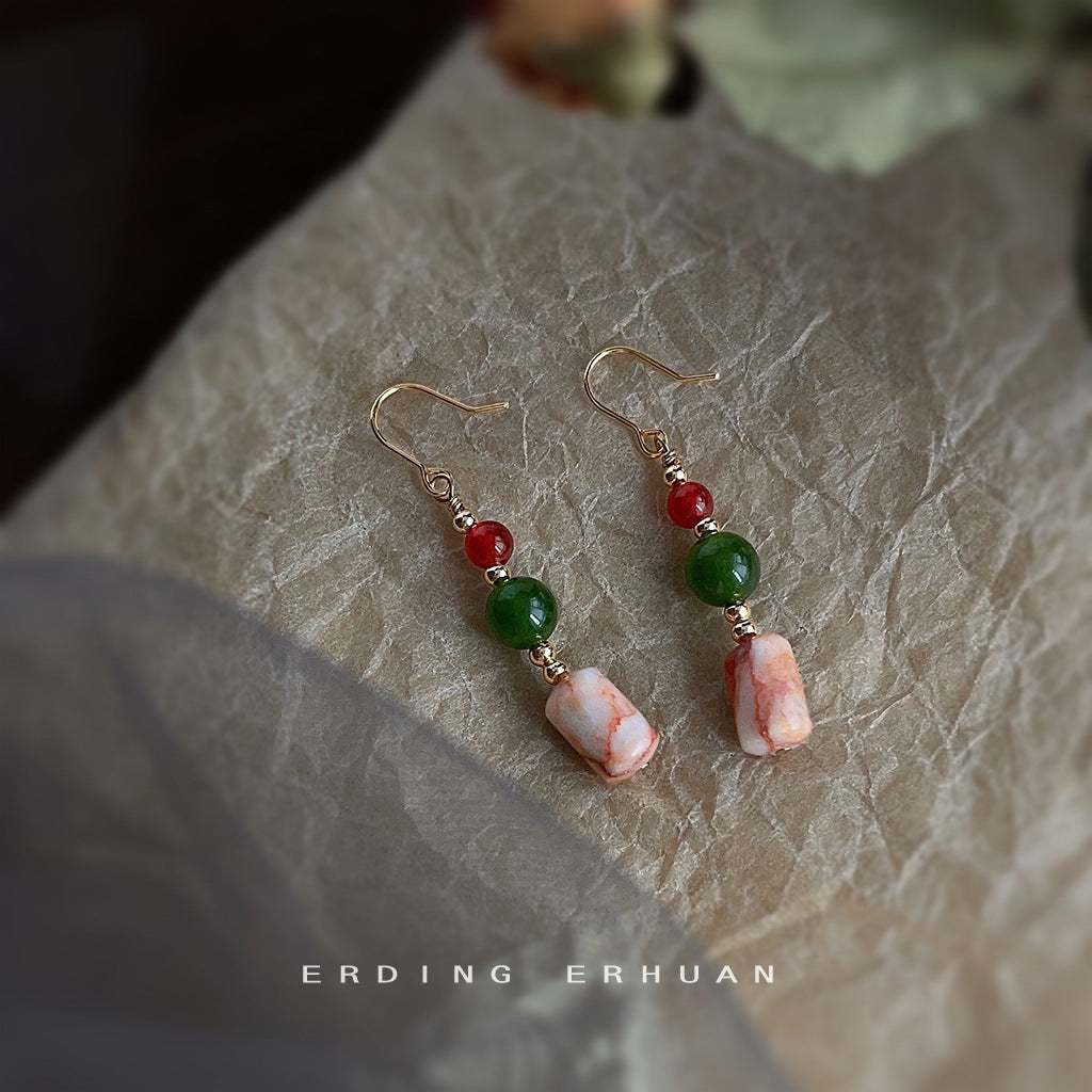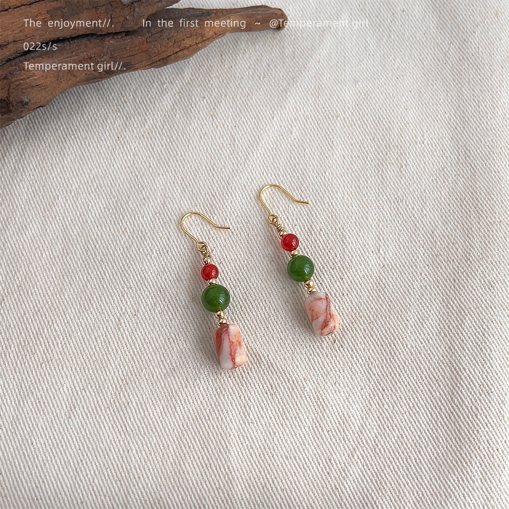 C廠【4051】全新中式手工藝設計感天然石原創設計旅遊景點新款耳環耳環飾品女 24.05-3