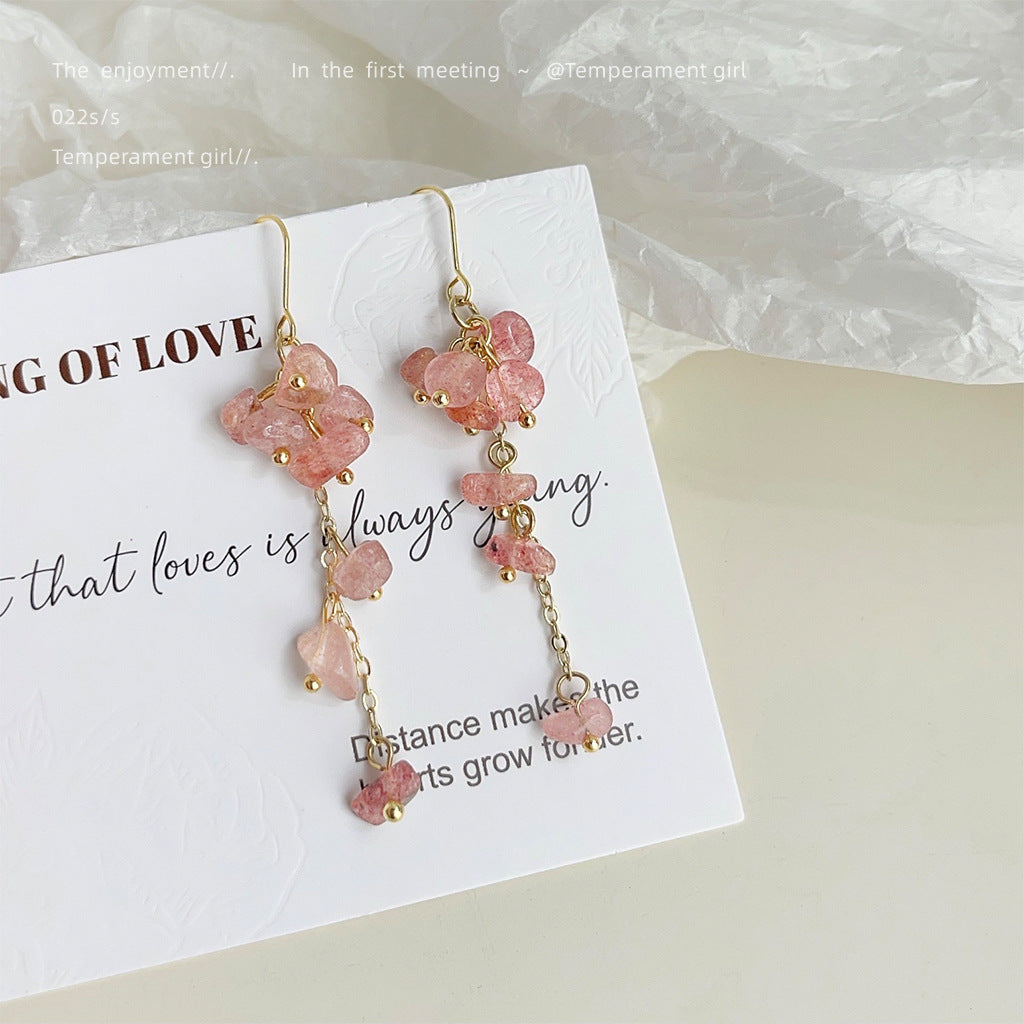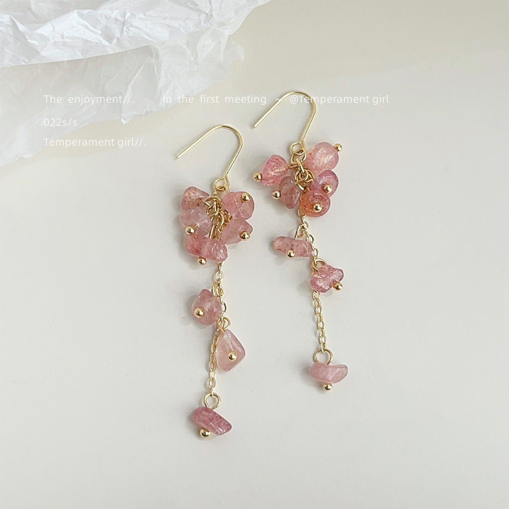 C廠【4078】森系超仙天然石草莓晶原創設計手工耳環氣質甜美清新小眾ins耳飾 24.05-3