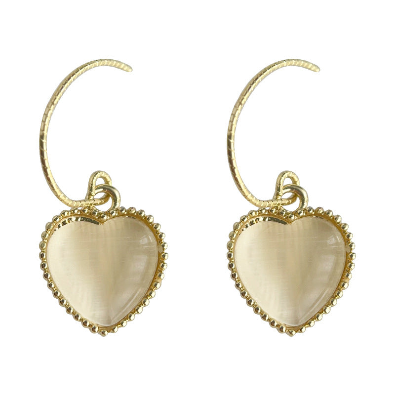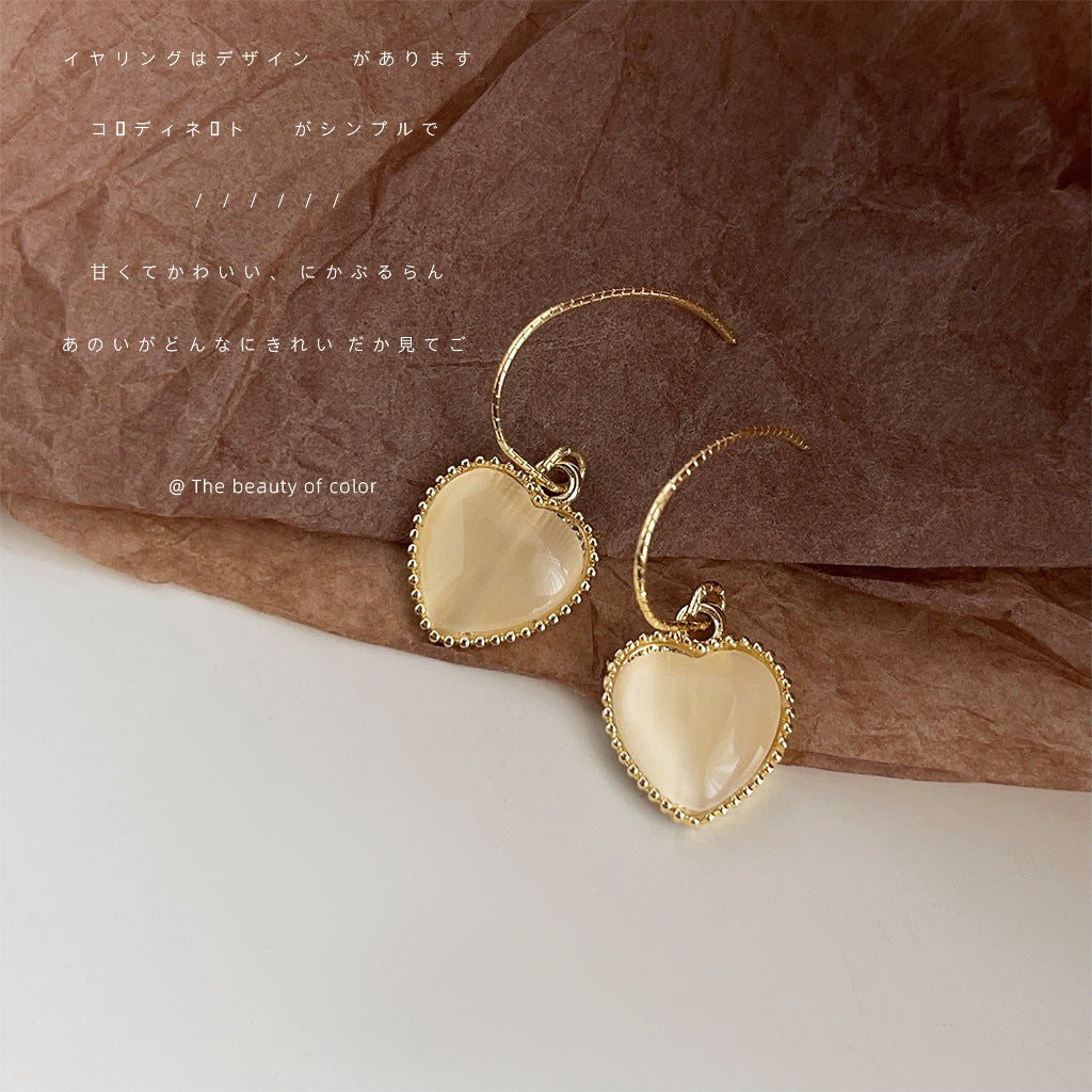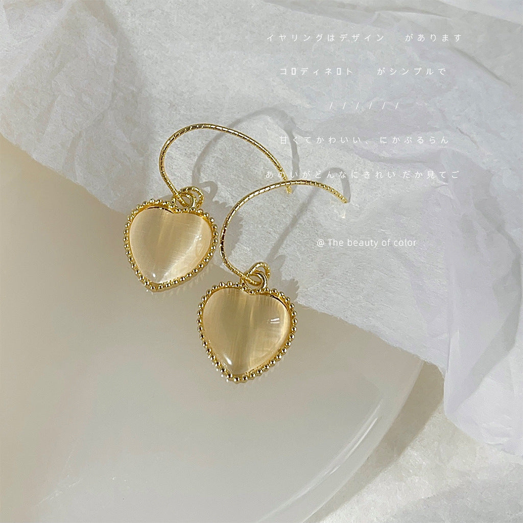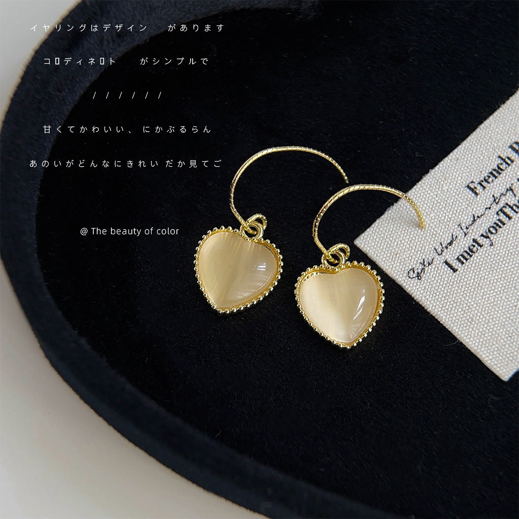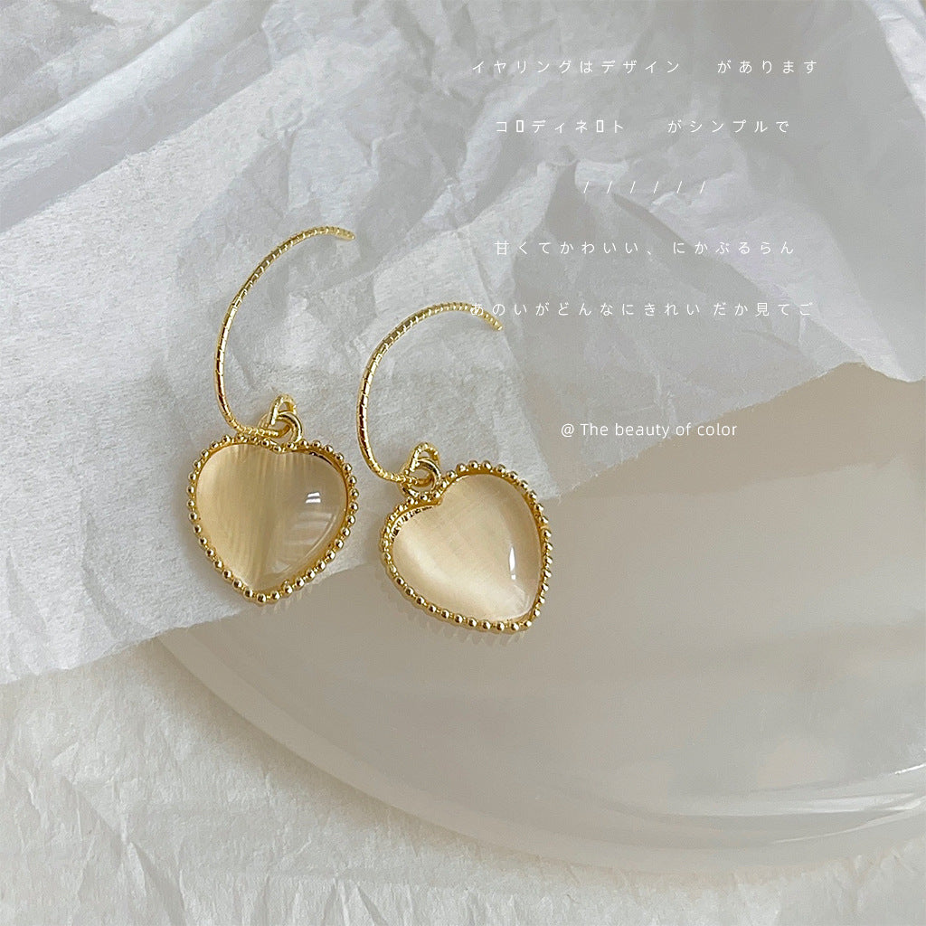 C廠【4086】玻璃貓眼石心型簡約法式耳環女氣質優雅通勤文藝愛心耳飾 24.05-4