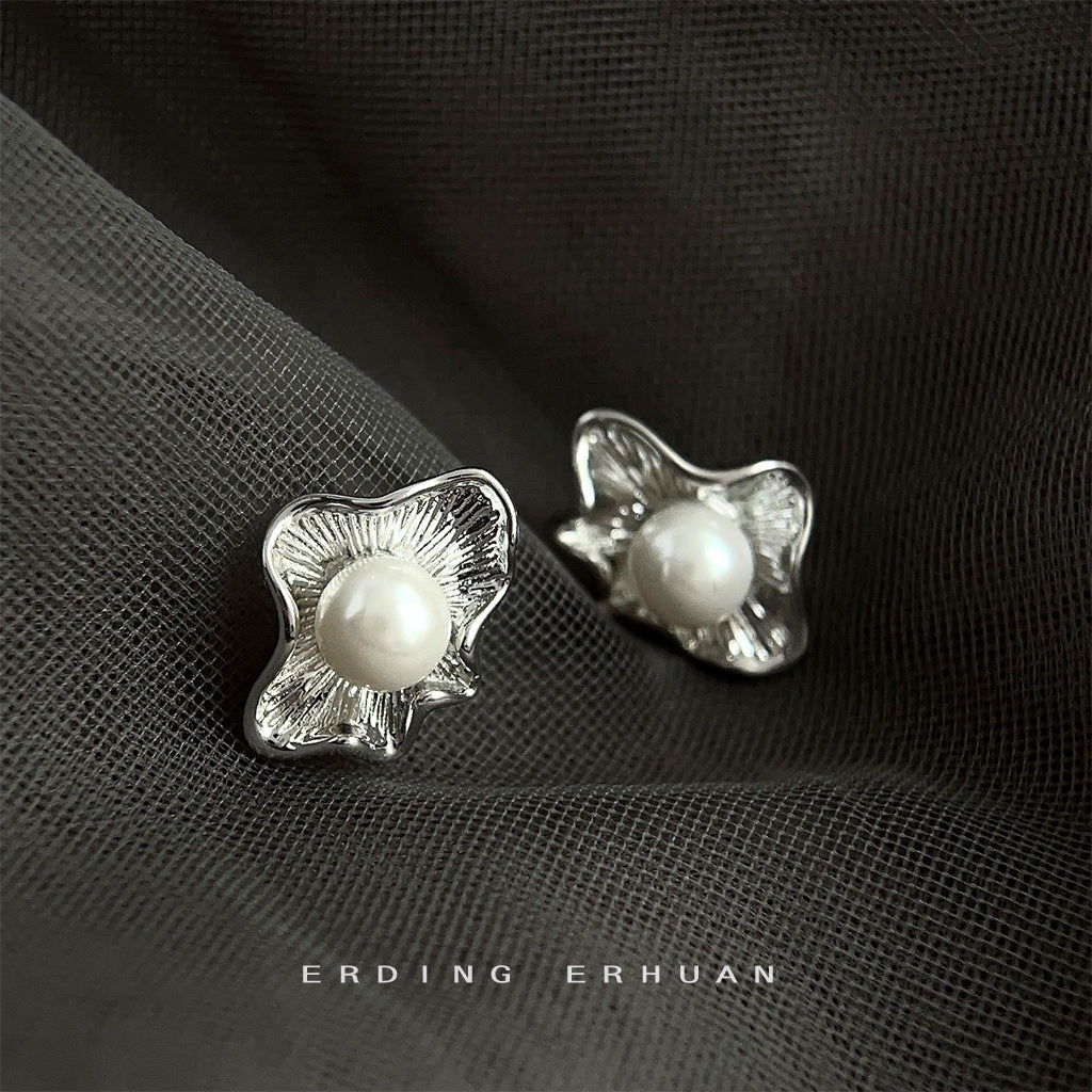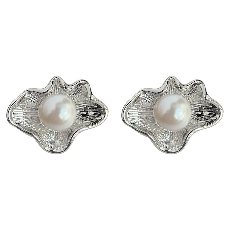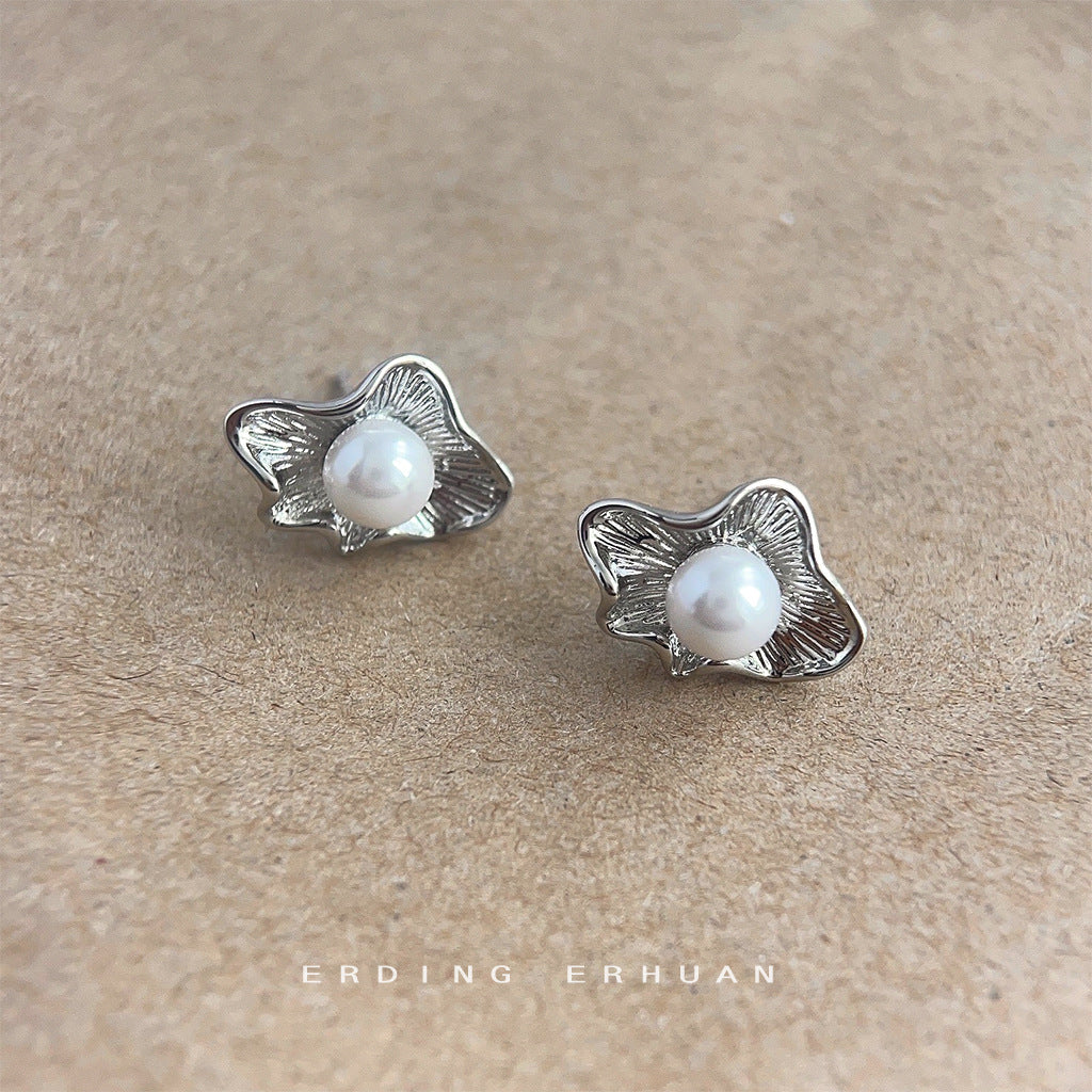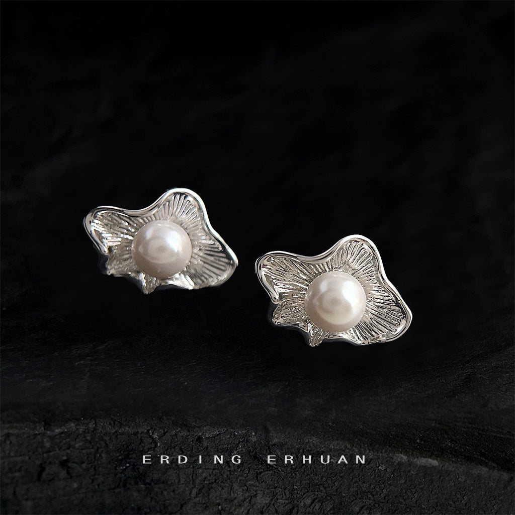 C廠【4117】藝術氣息不規則設計感新中式荷葉紋理新款耳環女氣質簡約耳飾 24.06-1