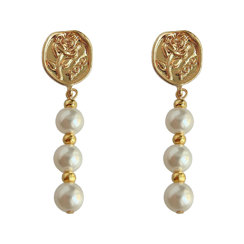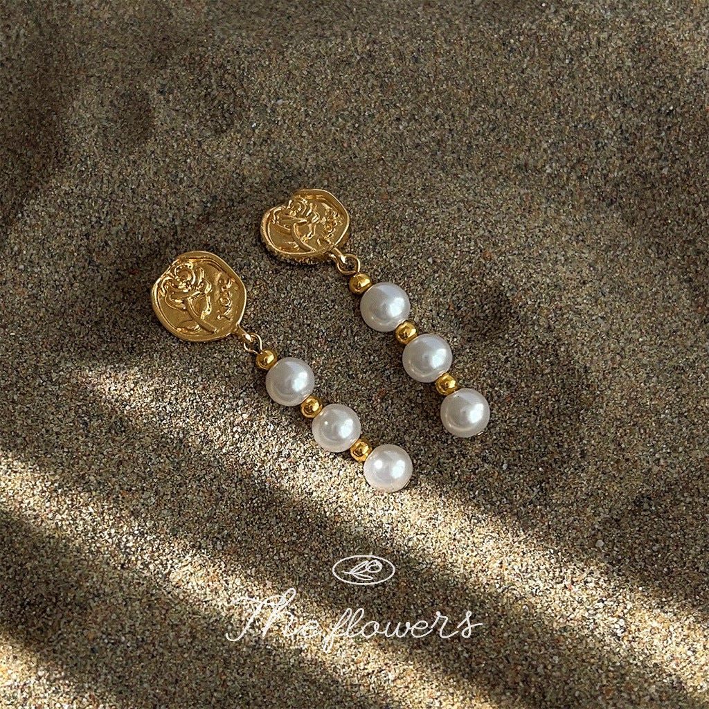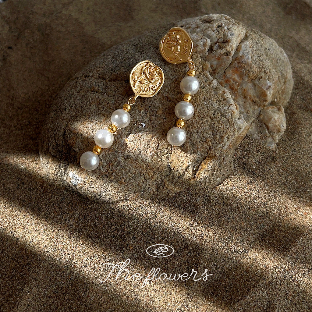 C廠【4134】設計師款高級感時尚通勤簡約珍珠長款流蘇鍍14K耳飾 24.06-1