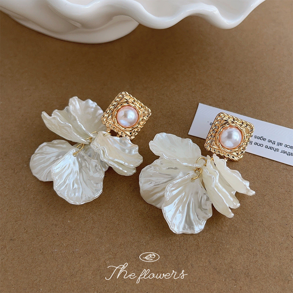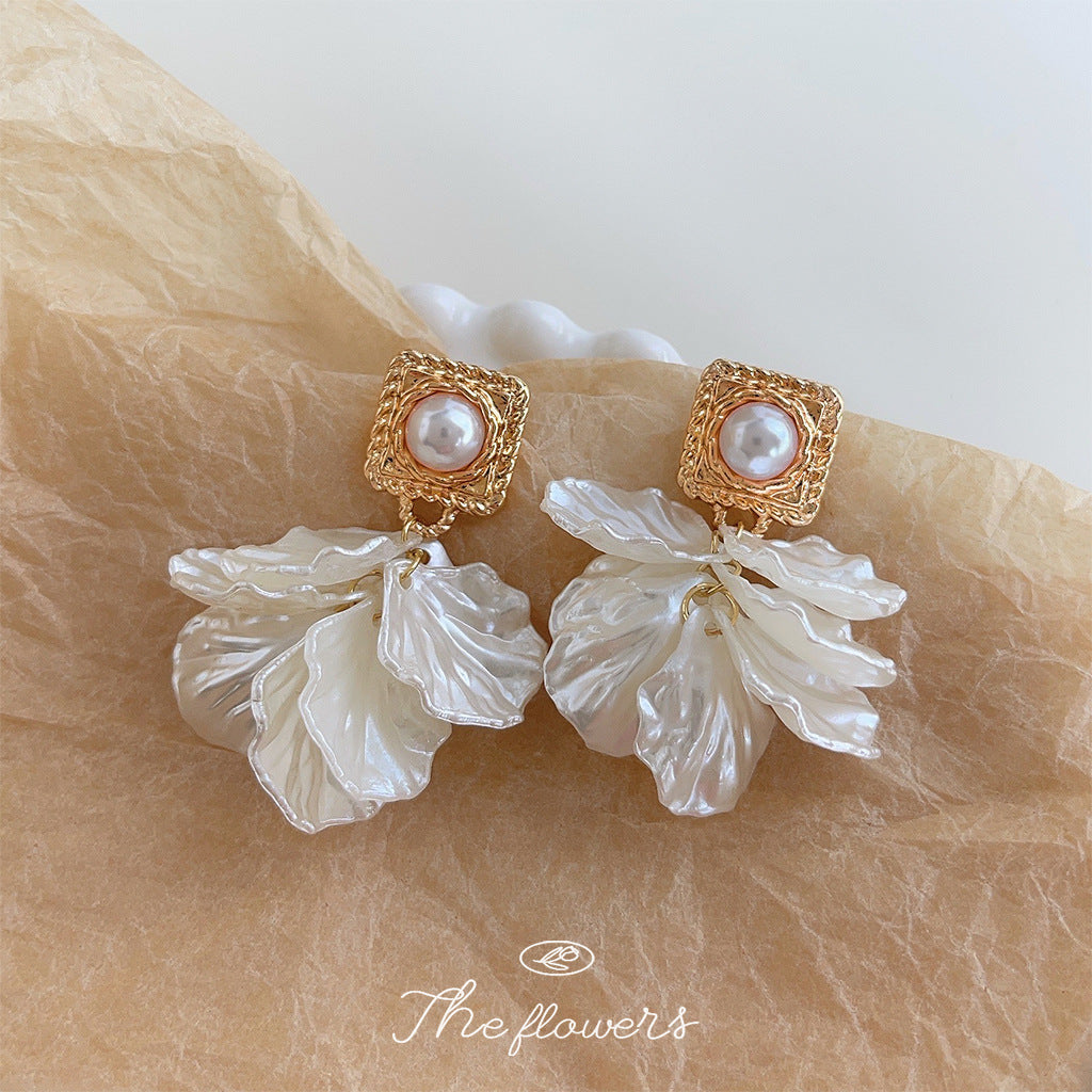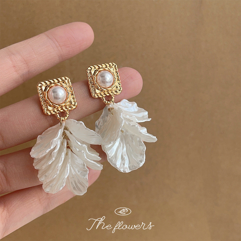 C廠【4152】新款耳環~清新甜美優雅氣質鍍14K壓克力花朵手工設計感銀針耳環女 24.05-4