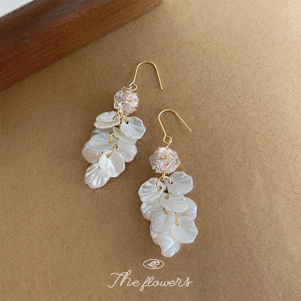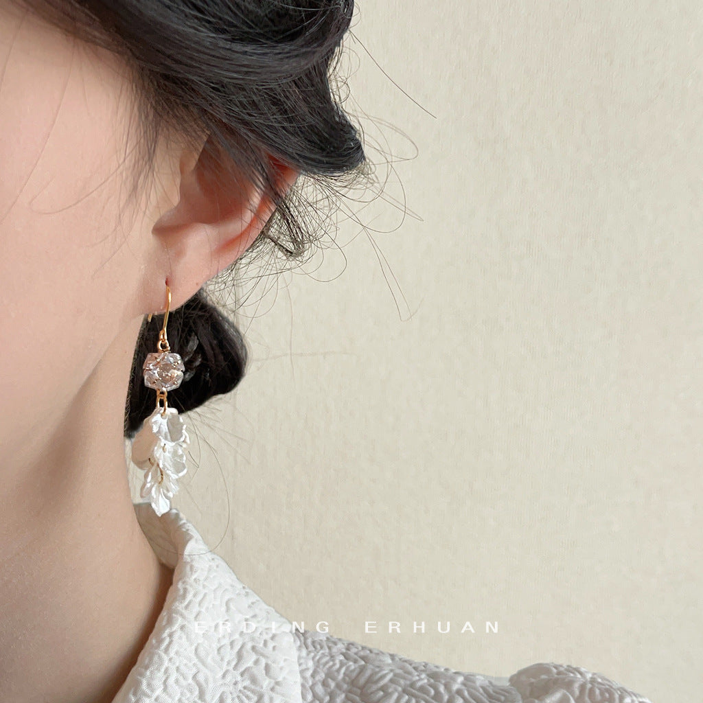 C廠【4153】實物很美~森系潮仙長款鋯石流蘇葉子耳環手工設計感甜美耳飾 24.05-4