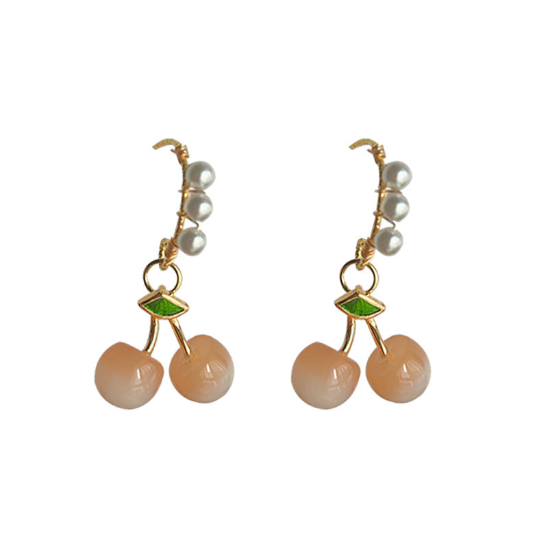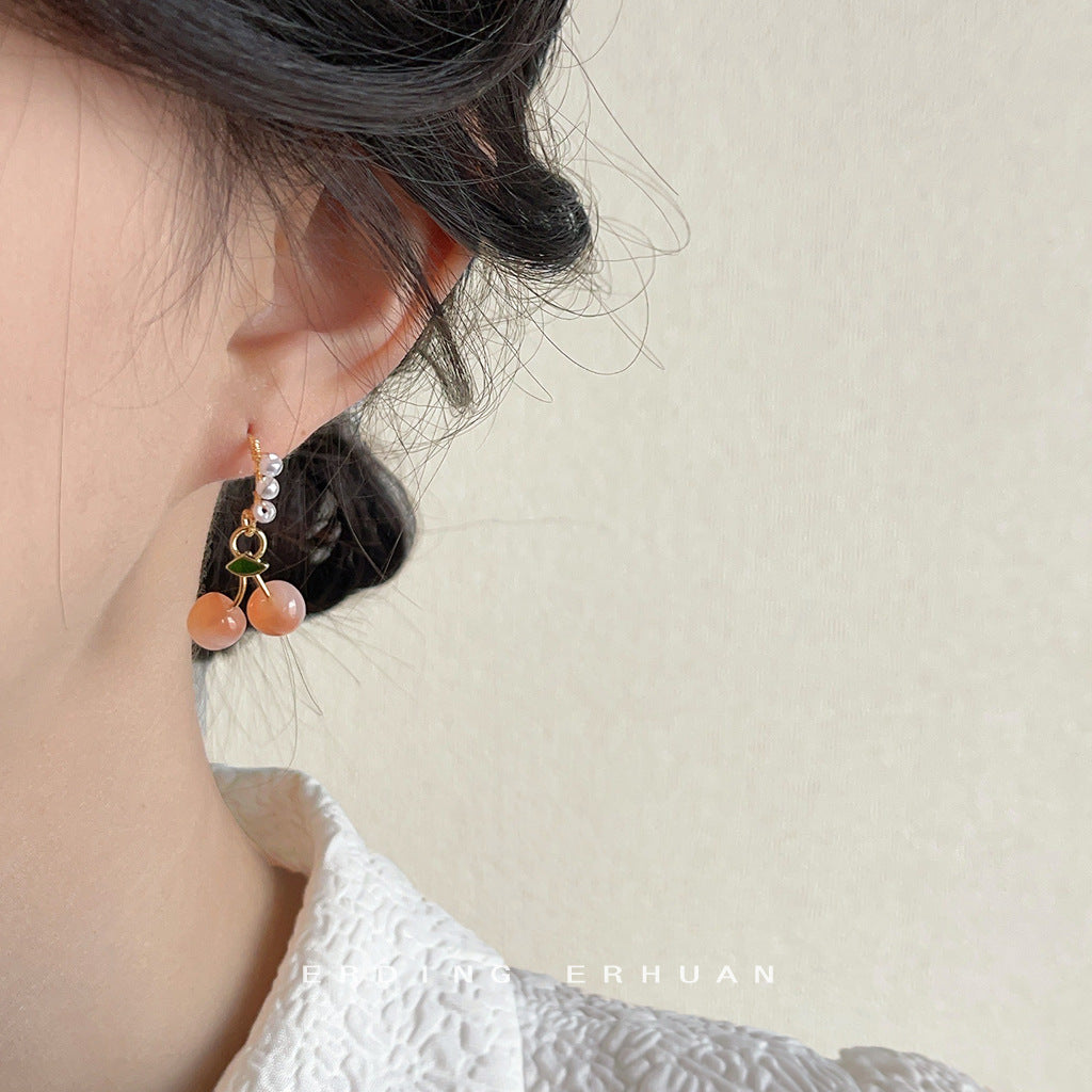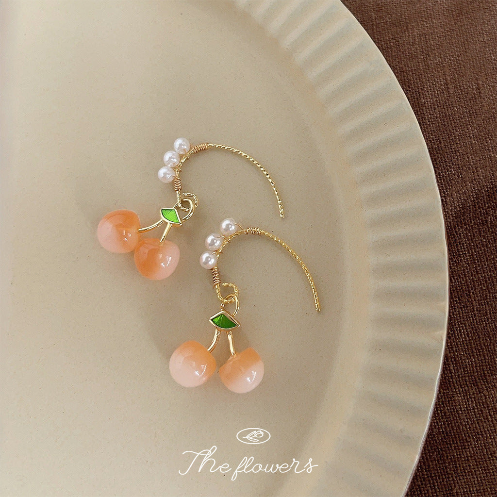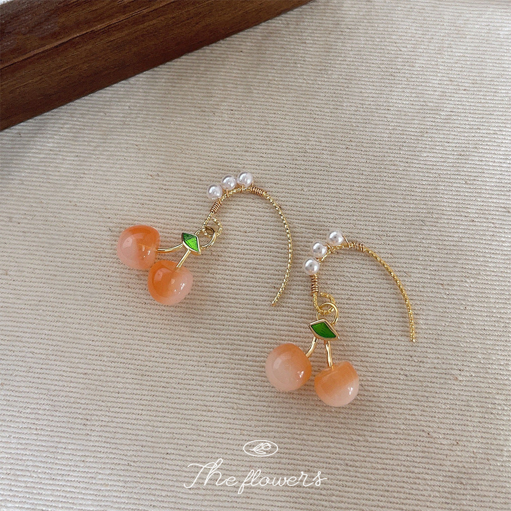 C廠【4155】清新甜美~夏日可愛小櫻桃手工藝設計感少女心耳飾氣質鍍14K耳環 24.05-4
