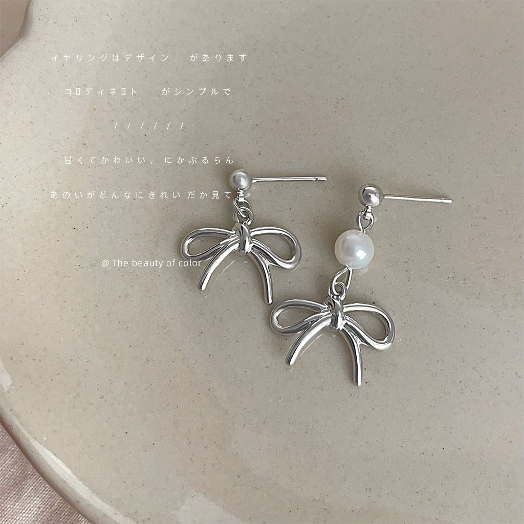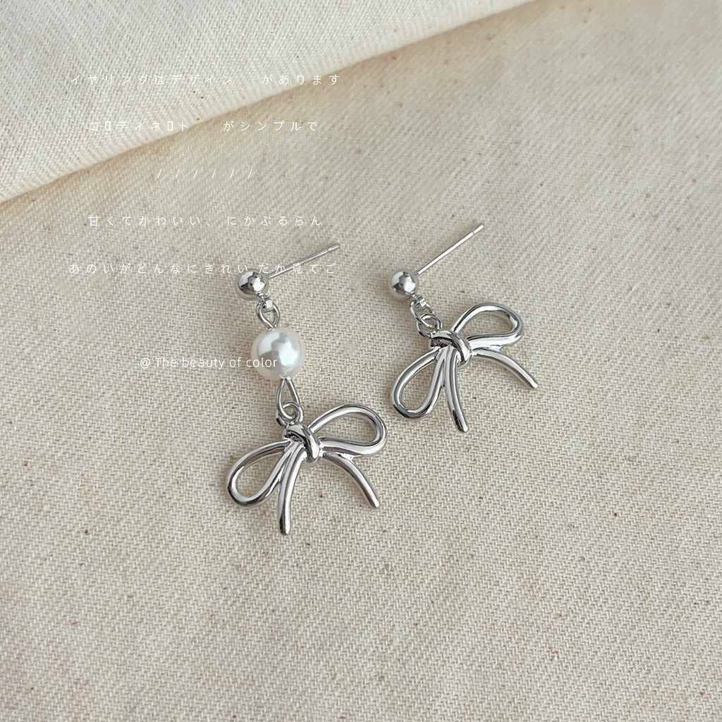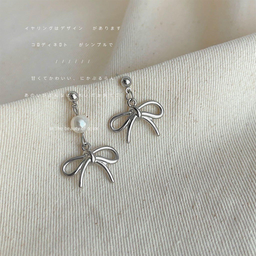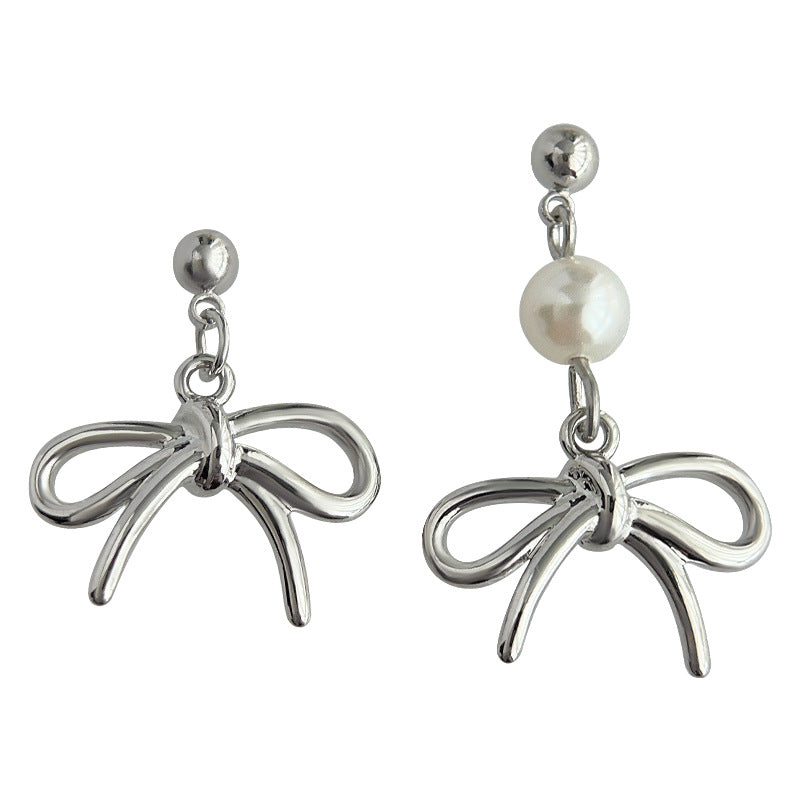 C廠【4189】不對稱設計感手作蝴蝶結耳飾女個性ins甜酷風銀針耳環 24.05-5