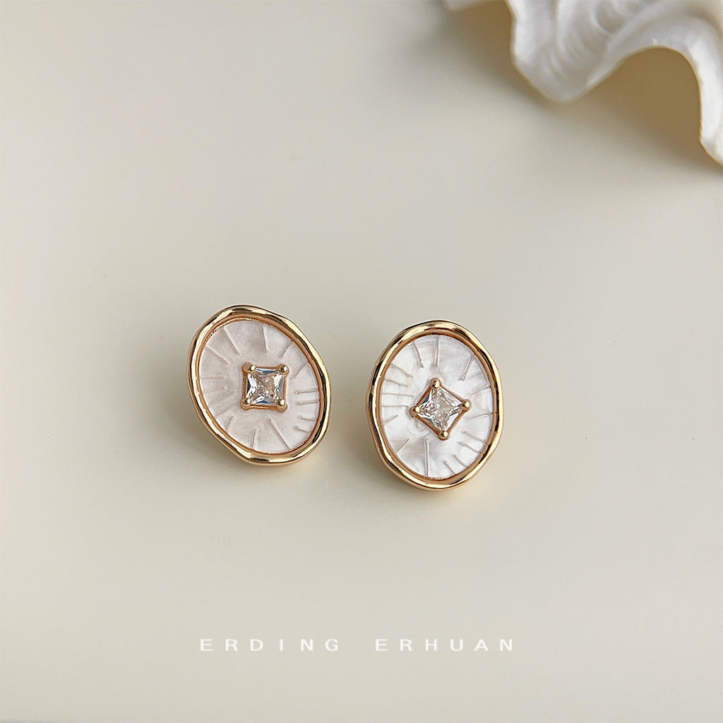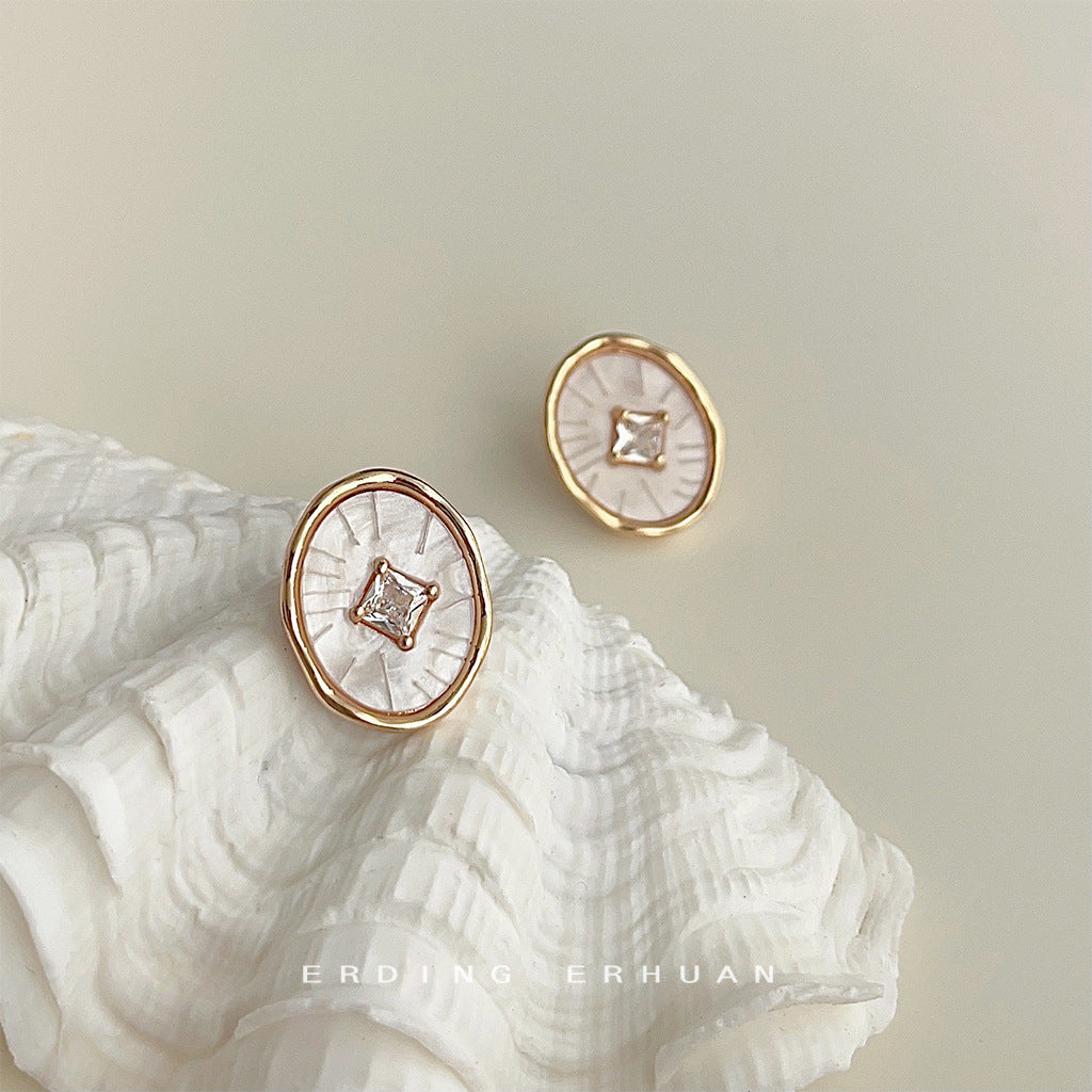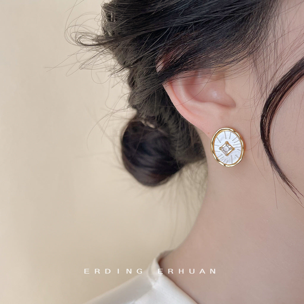 C廠【4233】微鑲鋯石鍍14K橢圓幾何古風高級感2024新款耳環耳環耳環 24.06-2