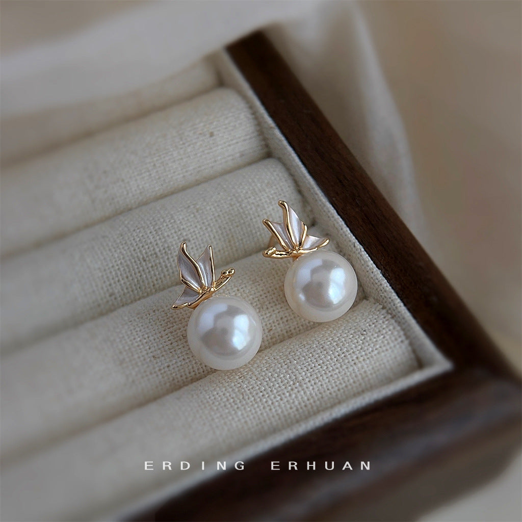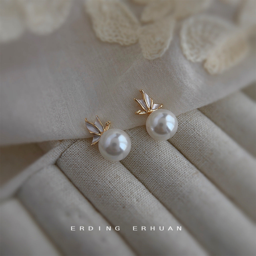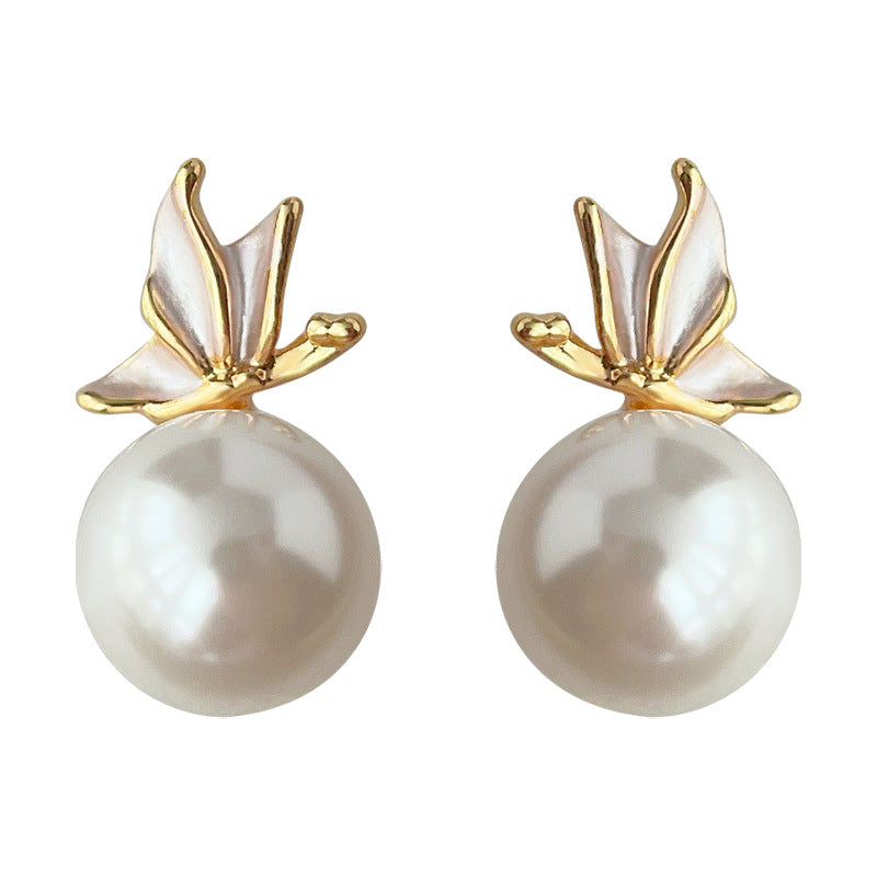 C廠【4294】施家玻璃珍珠森系超仙甜美小香風蝴蝶耳環氣質優雅新款耳環女 24.06-2