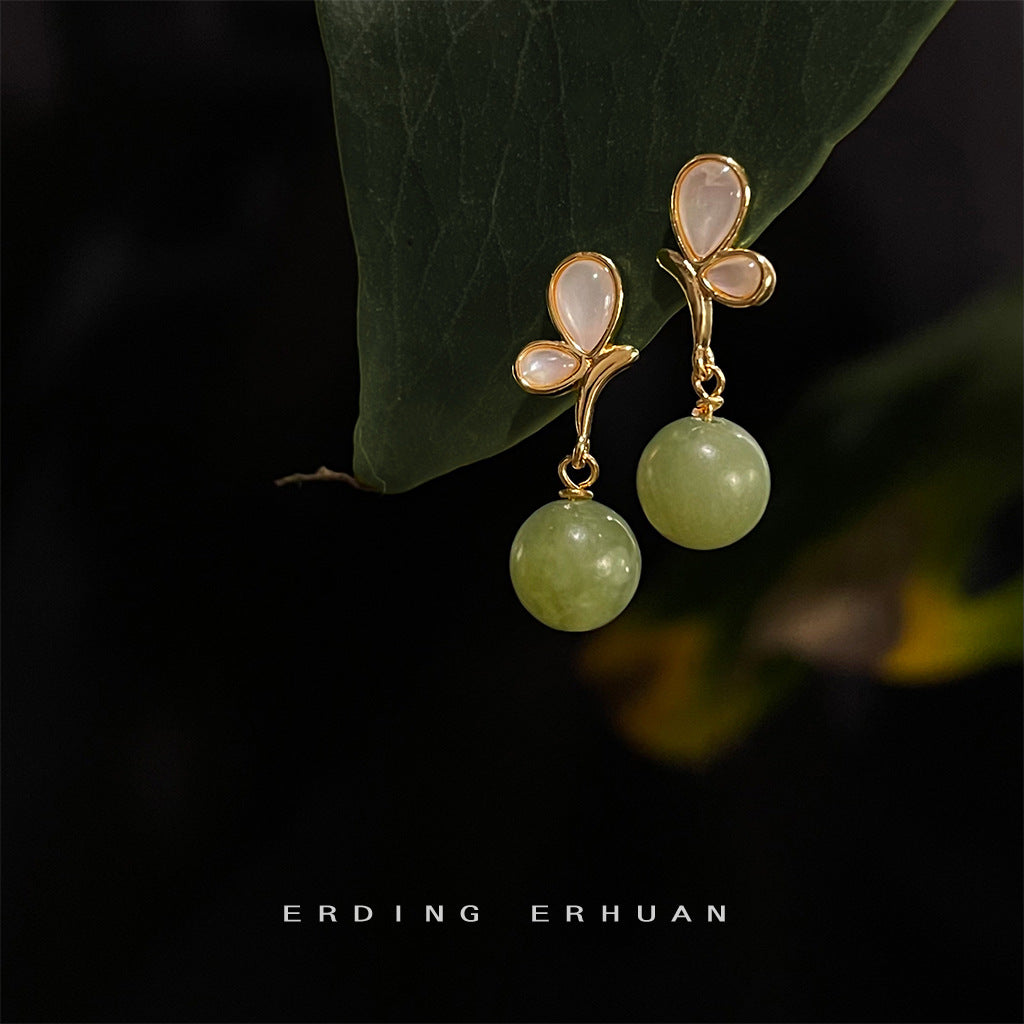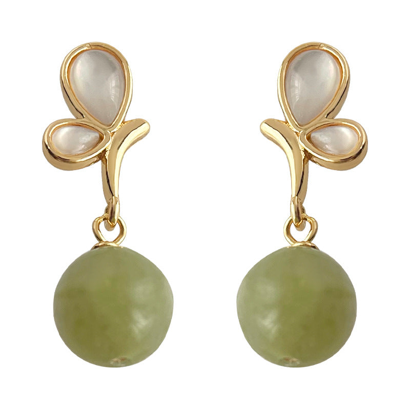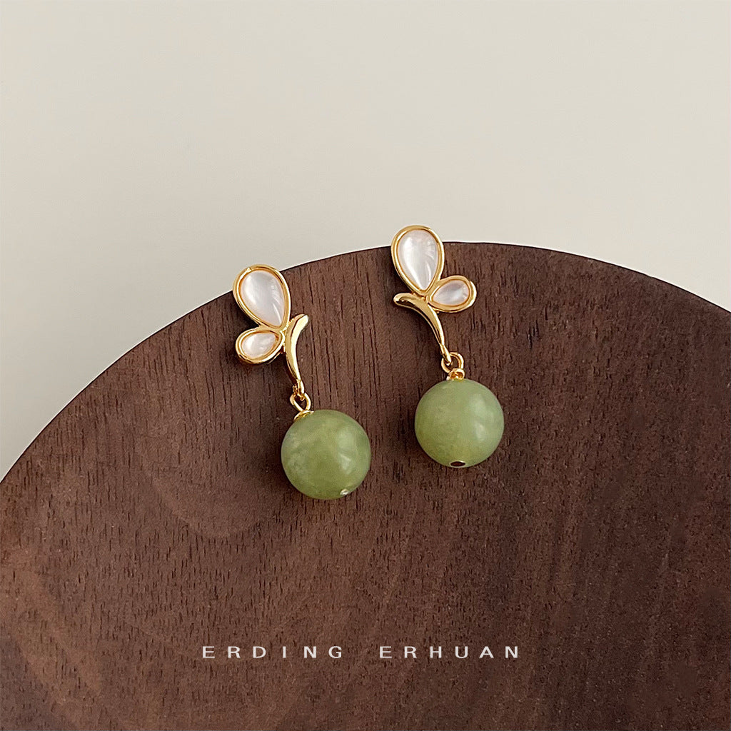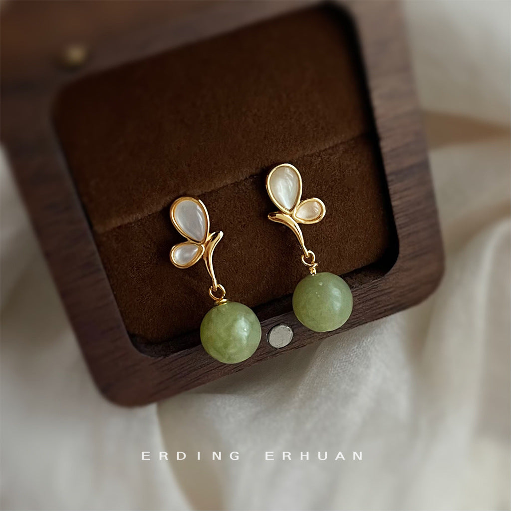C廠【4305】真貝殼天然石鍍14K文藝手工藝設計感蝴蝶耳環女清新輕奢風耳環 24.06-2