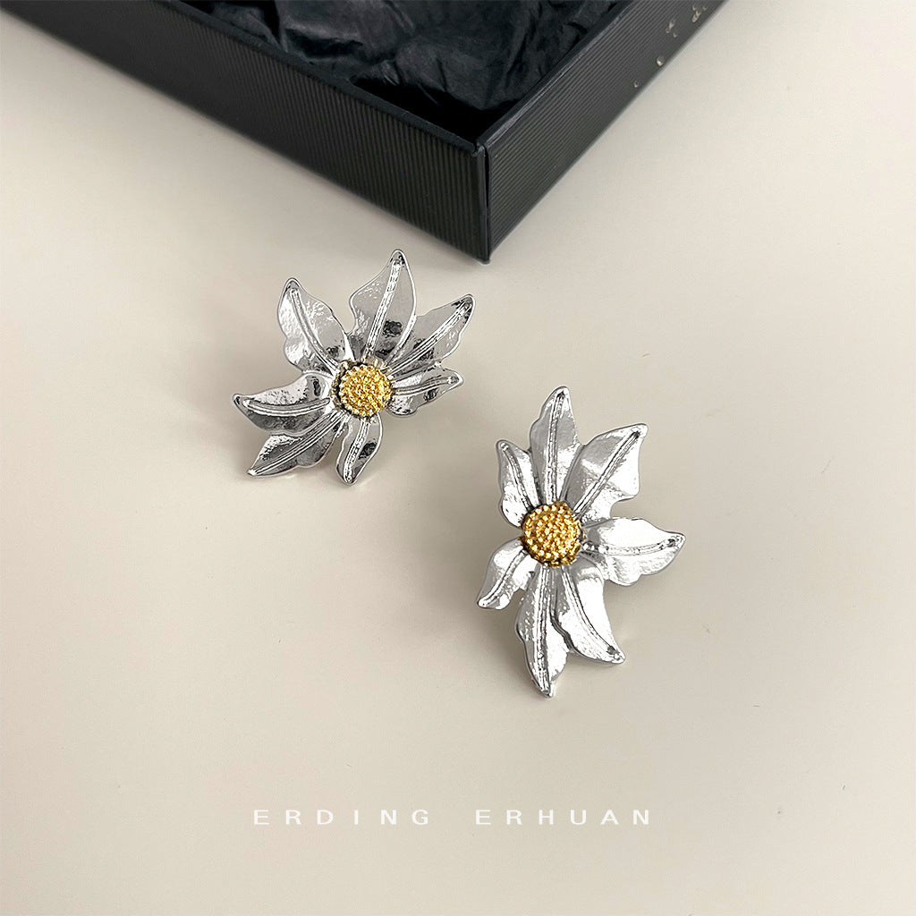 C廠【4395】個性冷淡風ins小眾設計感液態花朵耳環女不規則異形耳環飾品 24.06-4
