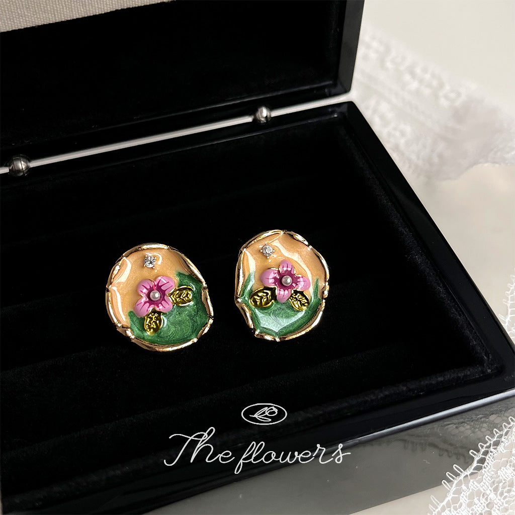 C廠【4398】新中式復古宮廷鍍14K琺瑯滴釉彩繪花朵耳環氣質優雅新款耳飾 24.06-4