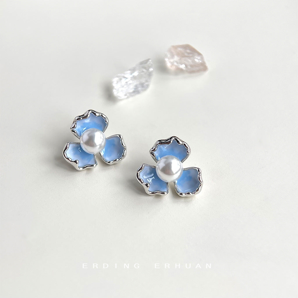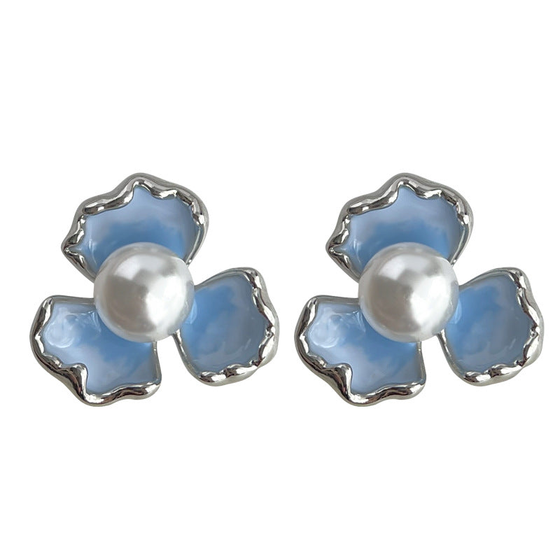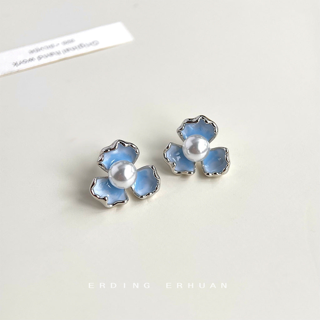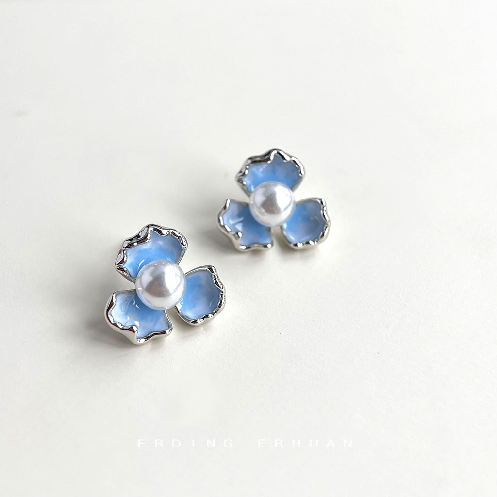 C廠【4401】鳶尾花森系清新甜美立體漸層淺藍色銀針花朵耳環耳飾耳環 24.06-4
