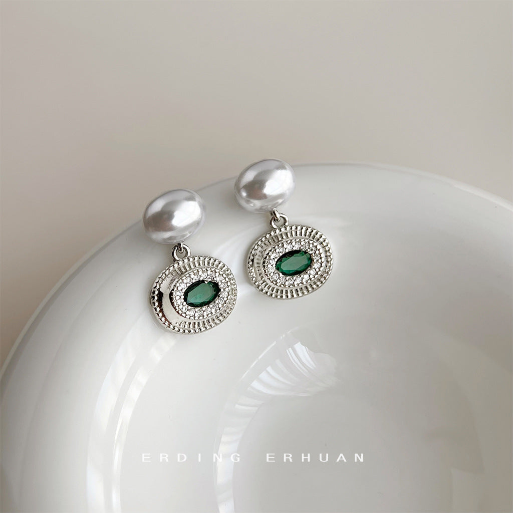 C廠【4405】微鑲鋯石個性冷淡風祖母綠橢圓幾何銀色耳飾ins網紅新款耳環 24.07-1