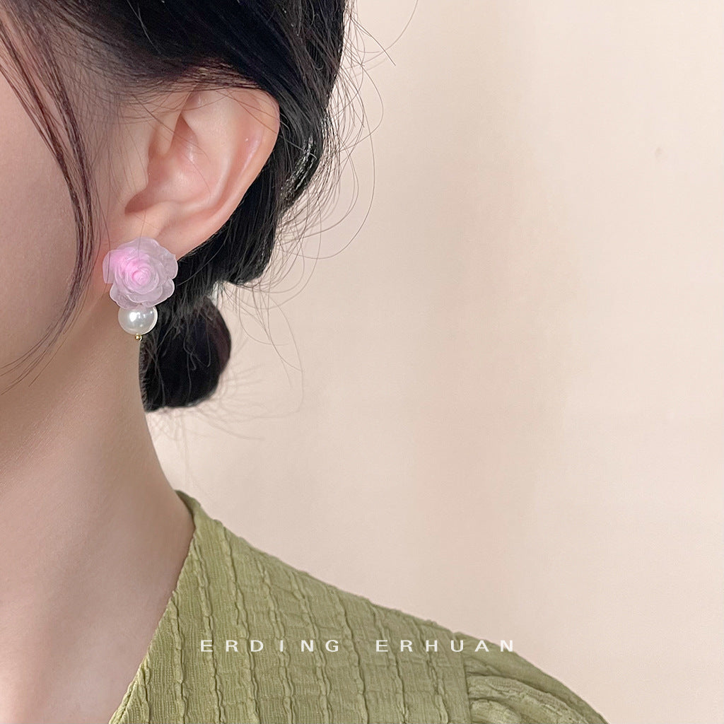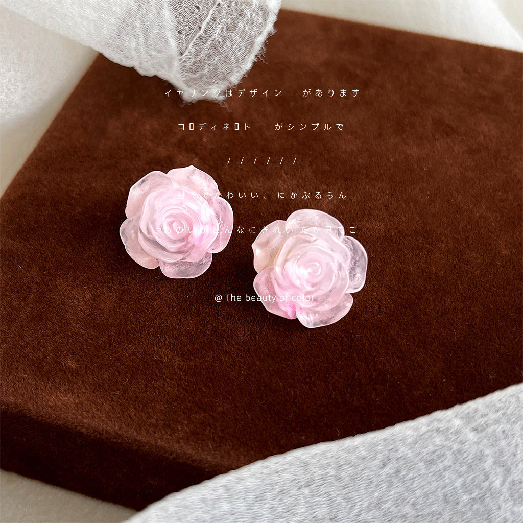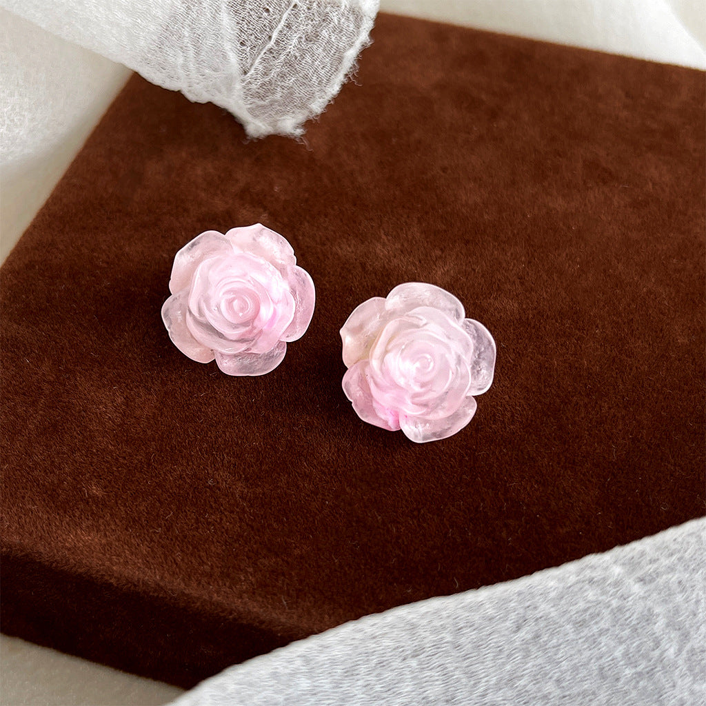 C廠【4412】清新甜美少女心粉紅玫瑰花朵銀針耳飾女夏日新款耳環飾品 24.06-4