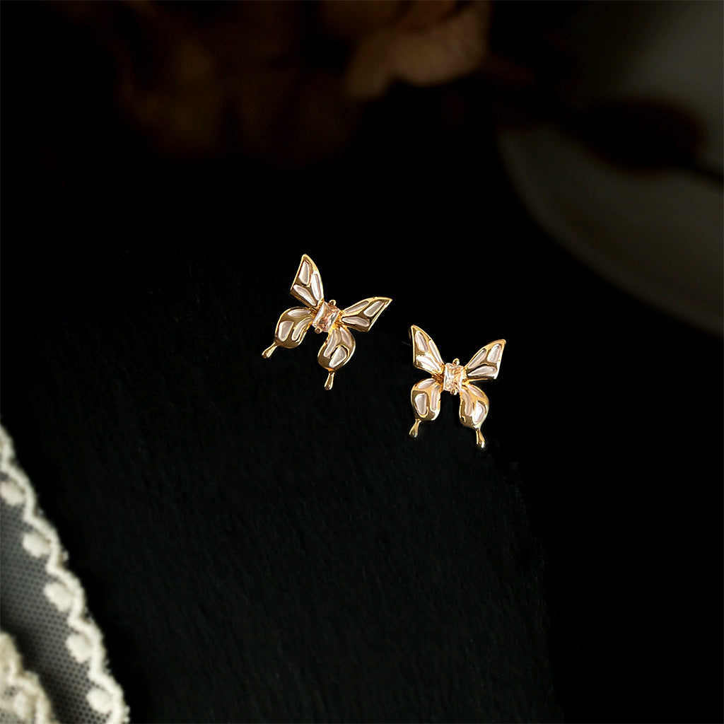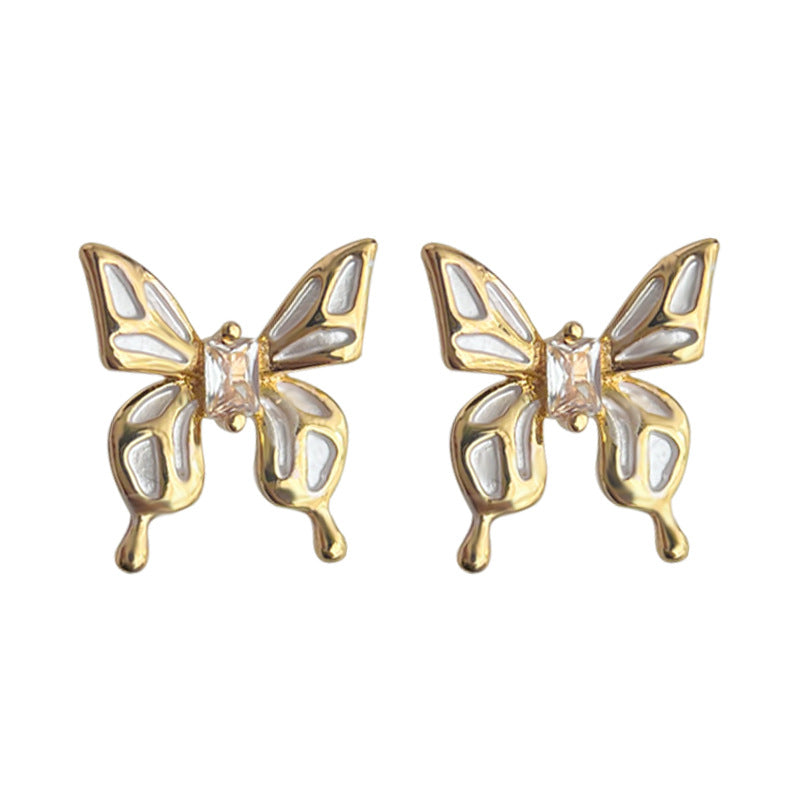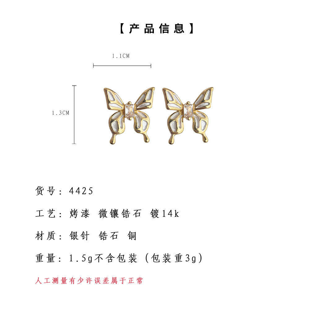 C廠【4425】微鑲鋯石鍍14K滴油蝴蝶液態質感甜美清新夏日新款耳環氣質耳飾女 24.06-4