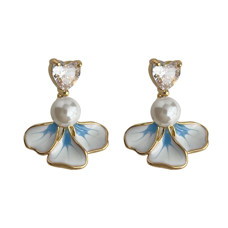C廠【4426】鳶尾花微鑲鋯石漸變滴油清新甜美鍍14K銀針耳飾耳環飾品 24.06-4