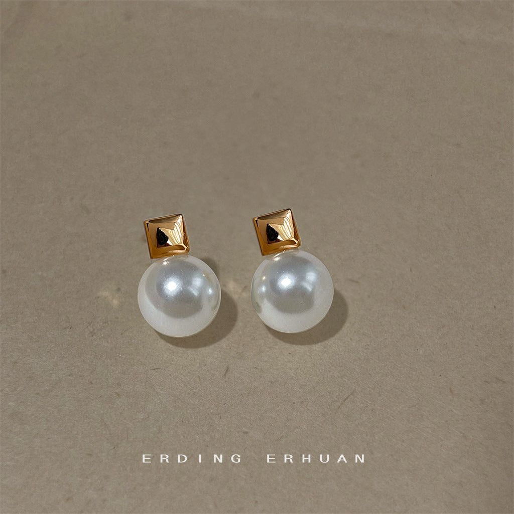 C廠【4434】時尚通勤珍珠鍍14K時尚通勤簡約高級感百搭圓形耳環氣質耳飾 24.09-4