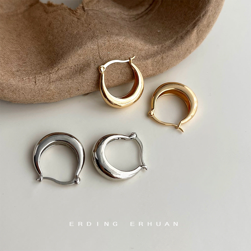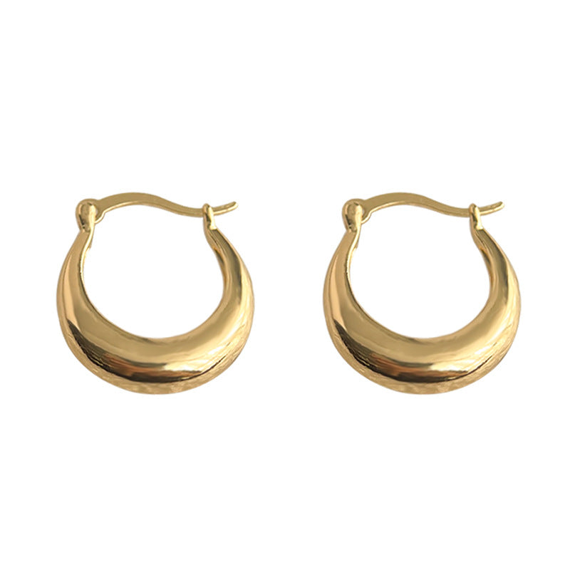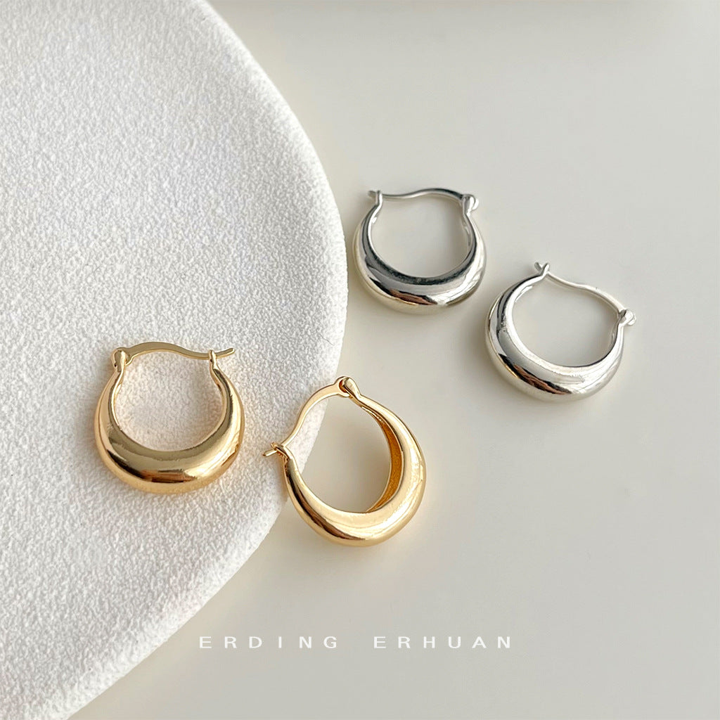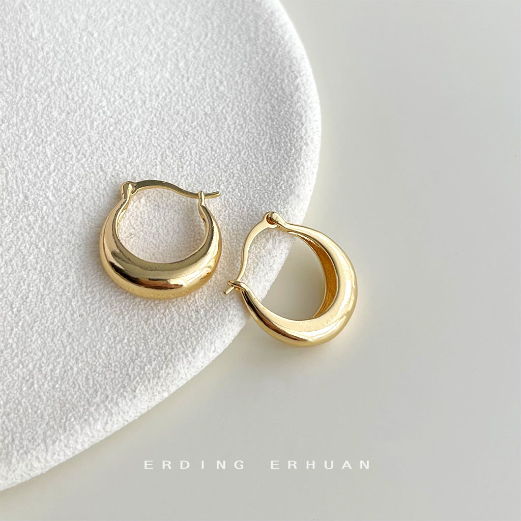 C廠【4437】時尚通勤電鍍14K百搭簡約日常款光面圓形幾何耳扣女氣質耳飾 24.07-1