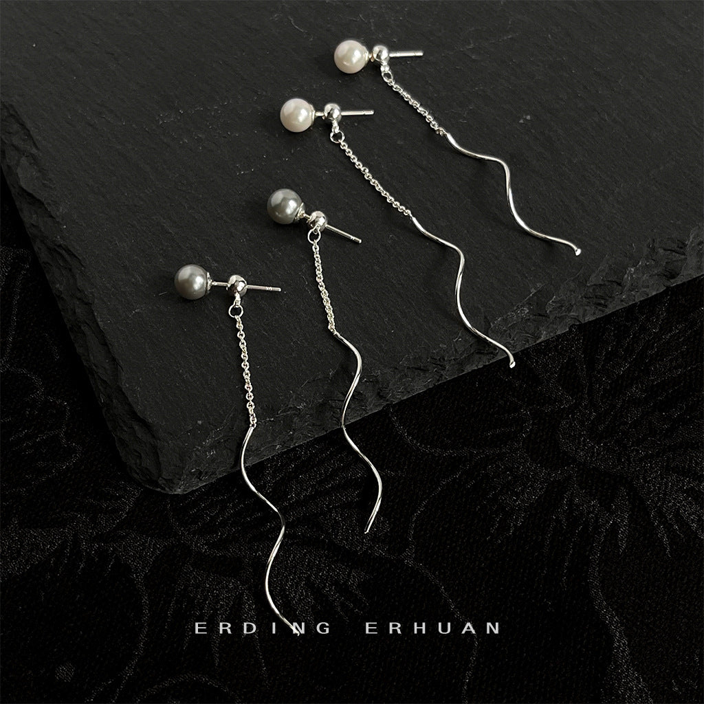 C廠【4440】一款兩戴玻璃施家珍珠長款流蘇線條夏日新款耳環耳環飾品 24.08-1