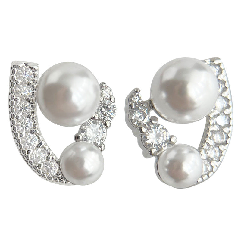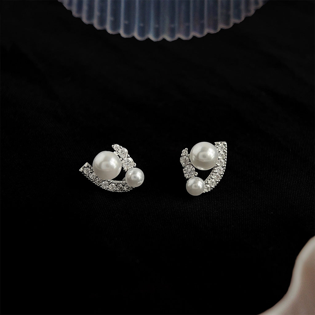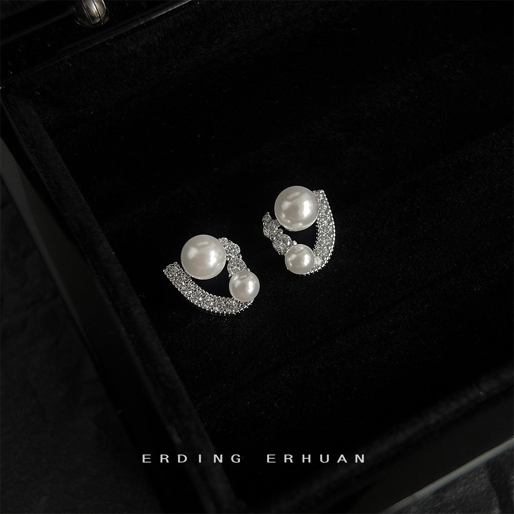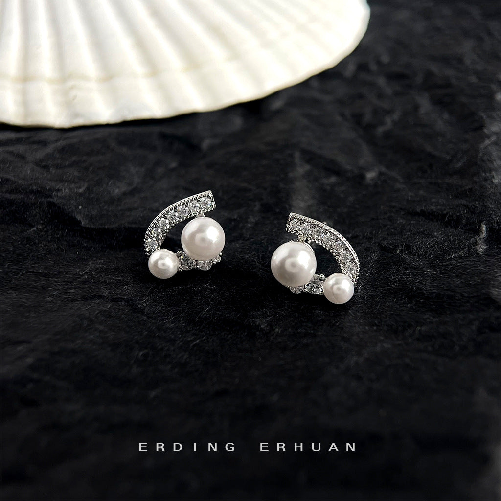 C廠【4454】微鑲鋯石時尚通勤簡約高級感小眾設計幾何珍珠耳環女氣質優雅耳飾 24.08-3