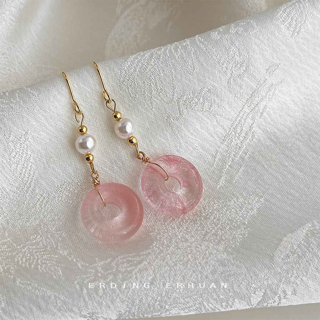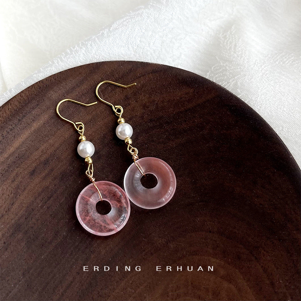C廠【4455】新中式國潮天然石楠紅圓長手工耳飾飾品耳環 24.07-4